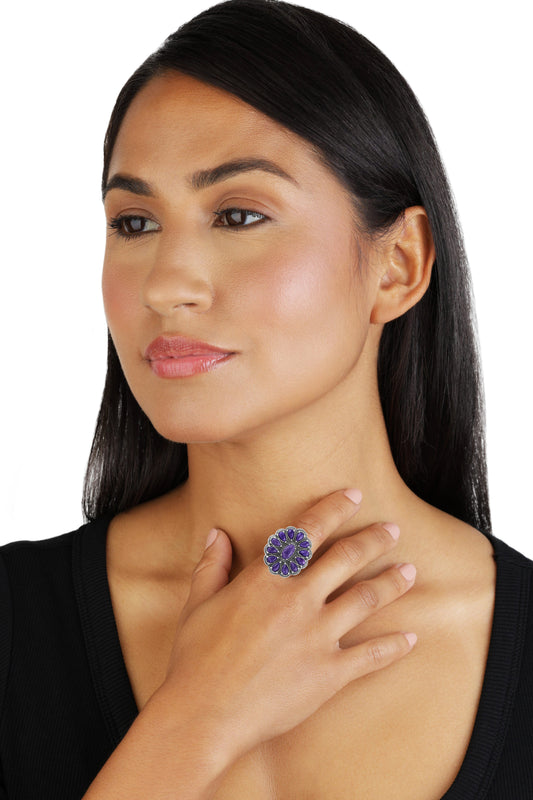 EXCLUSIVELY OURS! Sterling Silver Charoite Flower Cluster Ring, Sizes 5 to 10