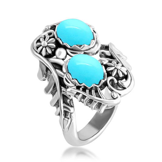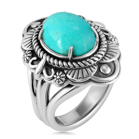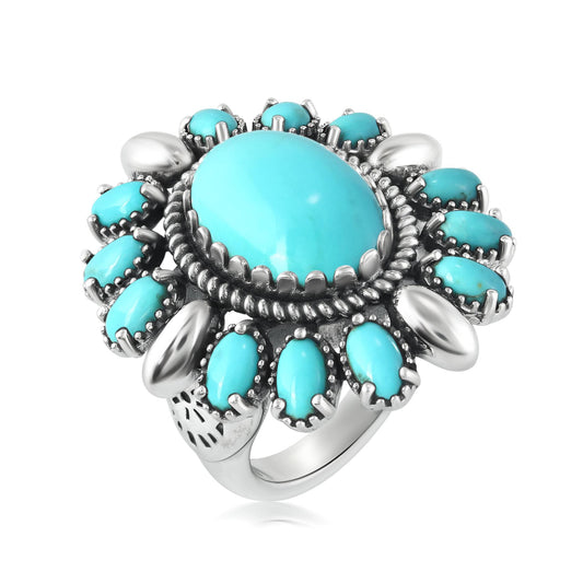 LIMITED EDITION! Sterling Silver Kingman Turquoise Oval Floral Cluster Ring, Sizes 5 to 11