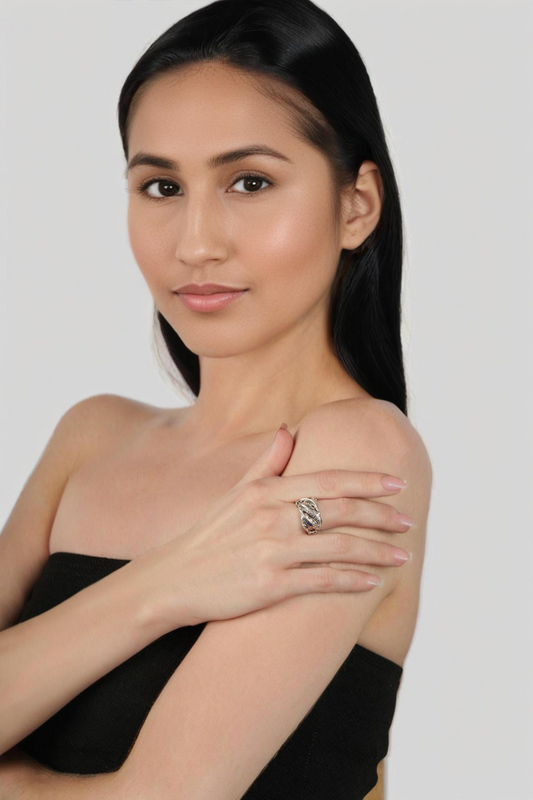 Sterling Silver Fritz Casuse Textured Naja Ring, Sizes 5 to 11