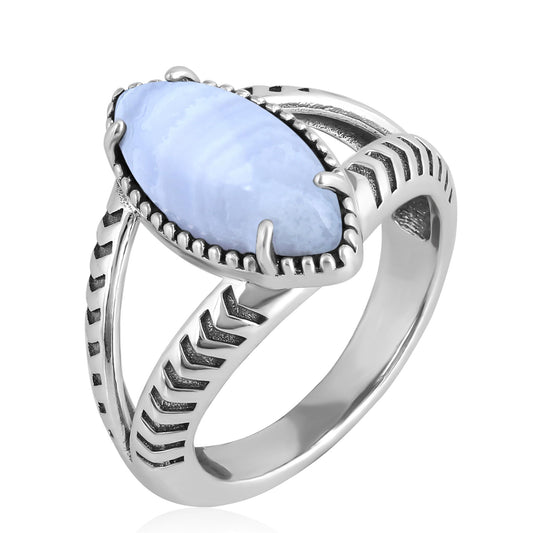 Sterling Silver Blue Lace Agate Marquise Split Shank Ring, Sizes 5 to 11
