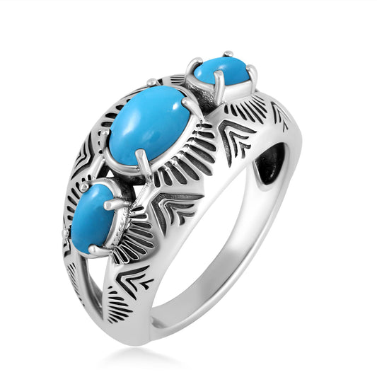 Sterling Silver Sleeping Beauty Turquoise 3-Stone Oval Band Ring, Sizes 5 to 11