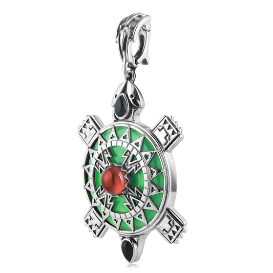 EXCLUSIVELY OURS! Sterling Silver Green Jade, Red Onyx, and Black Onyx Fritz Casuse Turtle Pendant Enhancer