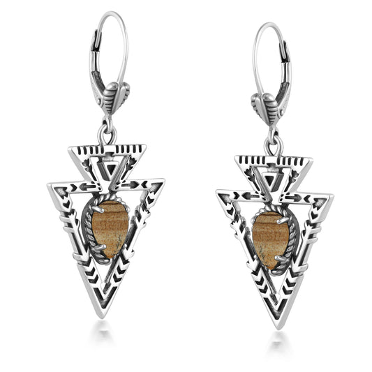 Sterling Silver Picture Jasper Arrowhead Lever Back Earrings