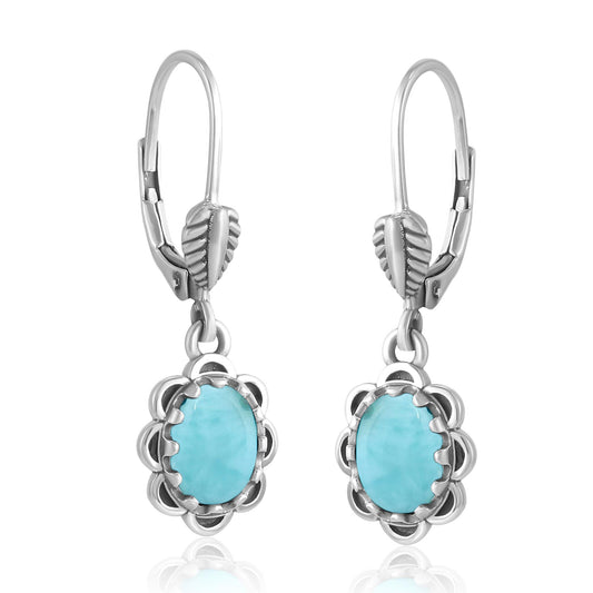 Sterling Silver Larimar Concha Lever Back Dangle Earrings