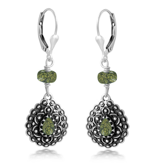 Sterling Silver Serpentine Pear-Shaped Concha Lever Back Earrings