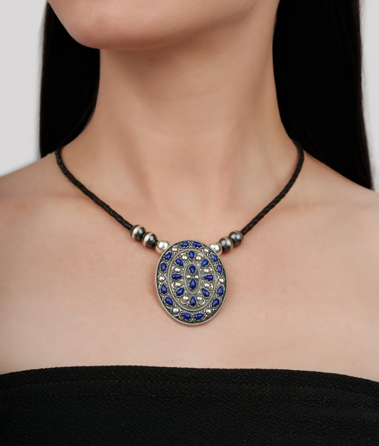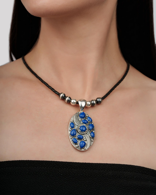 Sterling Silver Lapis Cluster Gemstone Oval Pendant Enhancer
