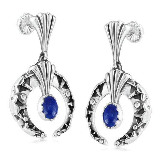 Sterling Silver Lapis Fritz Casuse Oval Gemstone Naja Earrings