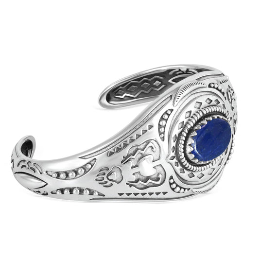 Sterling Silver Lapis Oval Cut Bear Cuff Bracelet, Sizes Small to Large