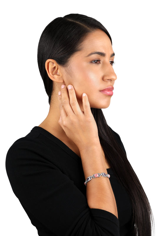 Sterling Silver Rhodochrosite and Rhodolite Garnet Concha Link Bracelet, Sizes Small to Large