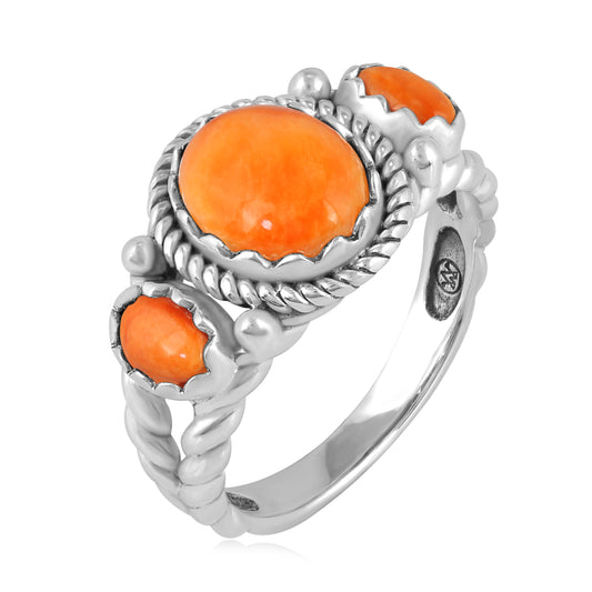 Sterling Silver Orange Spiny 3-Stone Ring, Sizes 5 to 10
