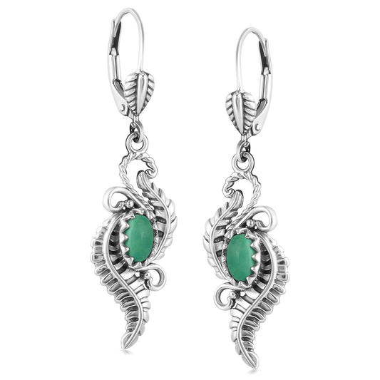 Sterling Silver Green Turquoise Vine and Leaf Dangle Earrings