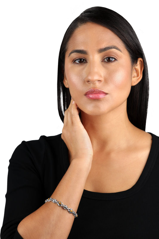 Sterling Silver Tiger's Eye Gemstone Concha Link Bracelet, Sizes Small to Large