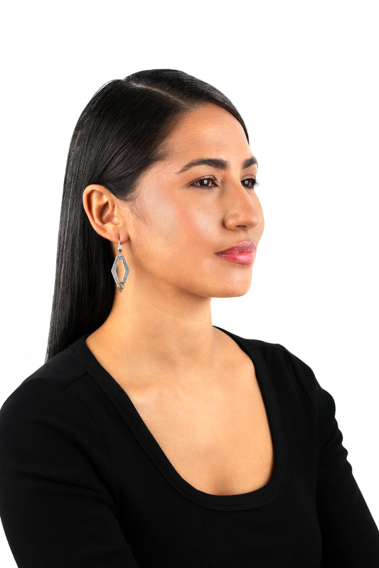Sterling Silver Geometric Shape Tiger's Eye Gemstone Lever Back Earrings