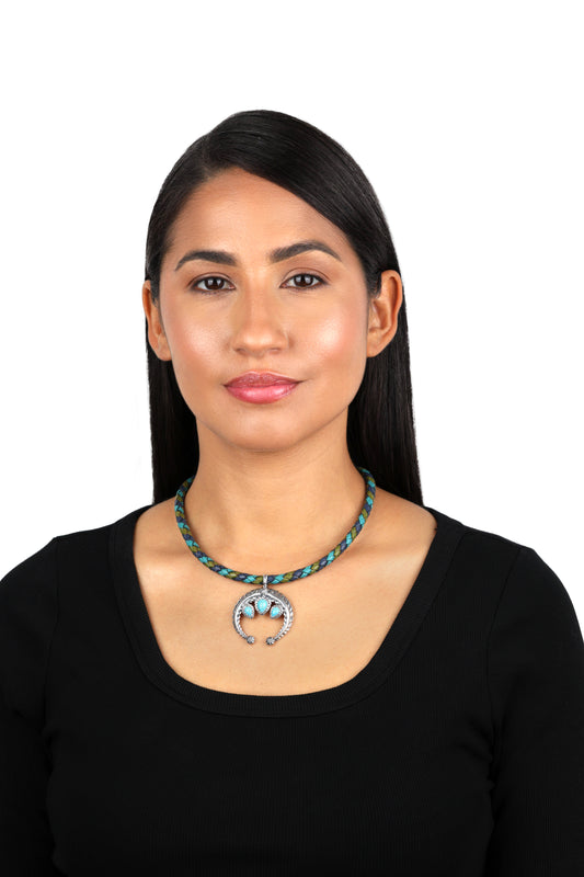 Sterling Silver Green Turquoise Fritz Casuse Naja Crescent Moon Pendant Enhancer