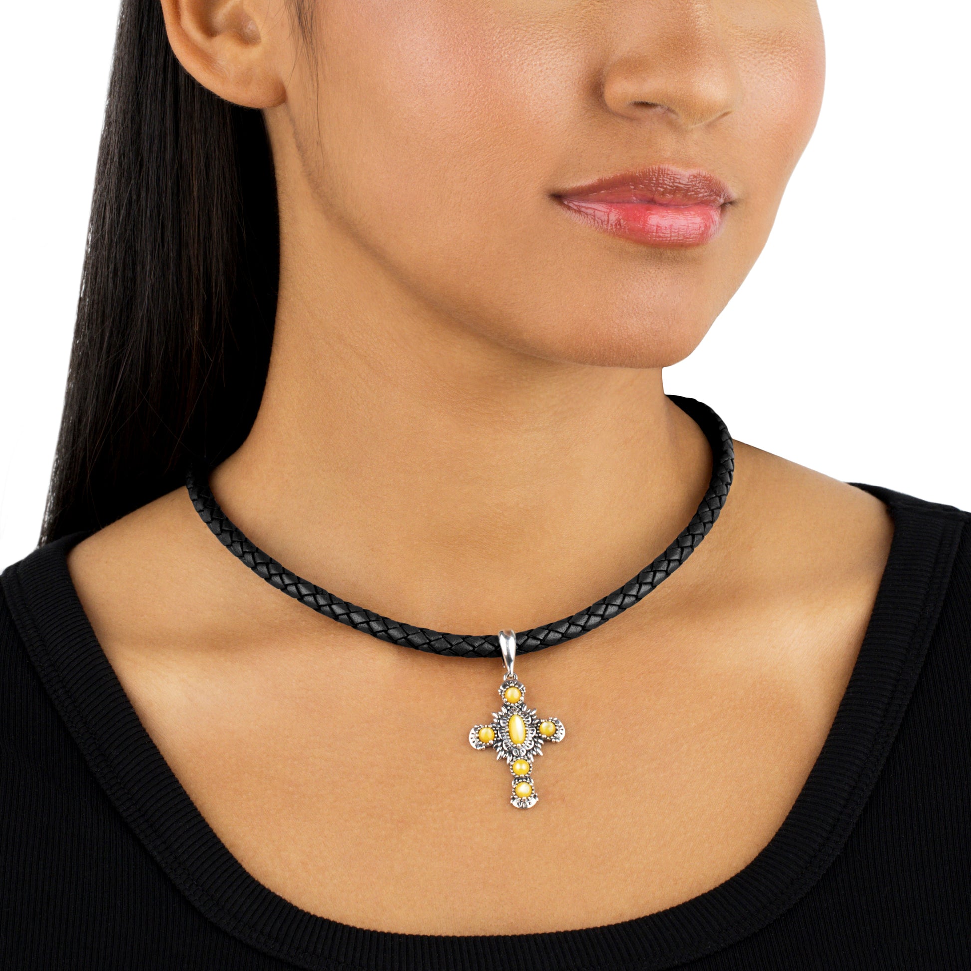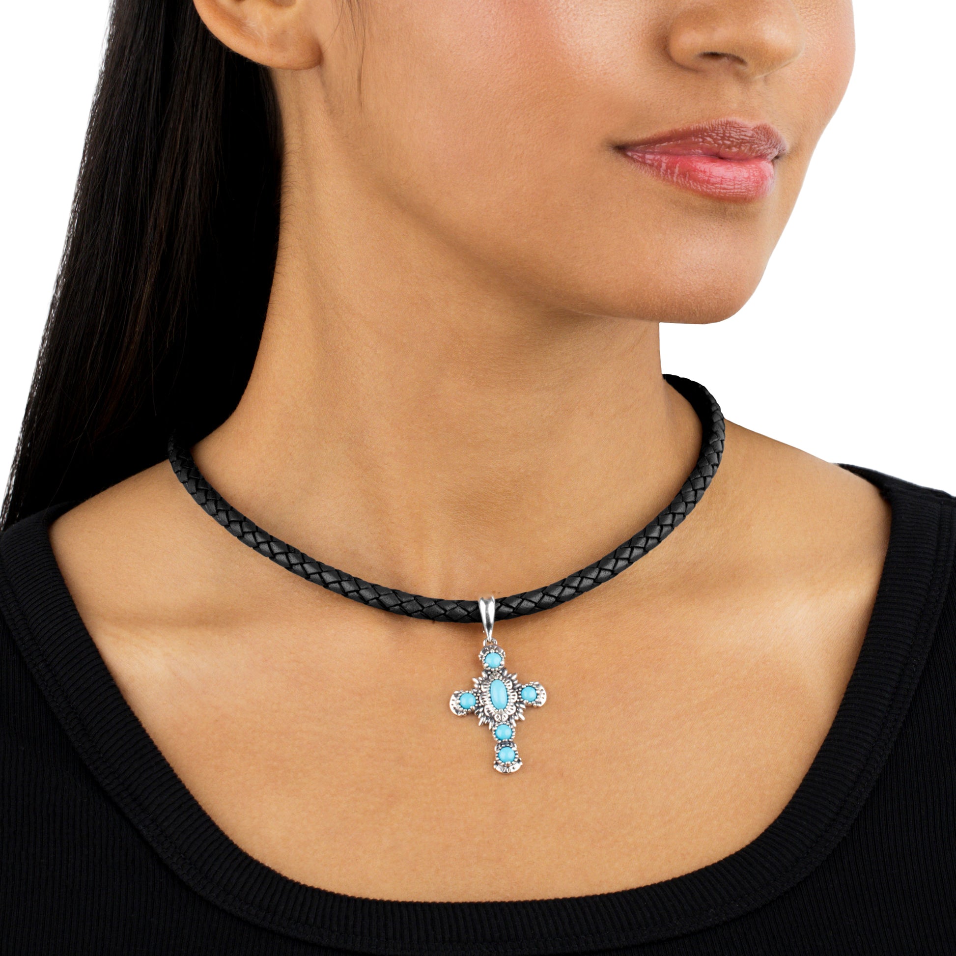Add simple Southwestern flair to any ensemble with this colorful braided leather necklace that looks great alone or layered with other pieces. The American West Braided Genuine Leather Necklace with Sterling Silver extender and end caps will get you noticed! Add a pendant enhancer to kick your look up a notch. Our gorgeous enhancers clip on easily to help create a statement piece in a snap!