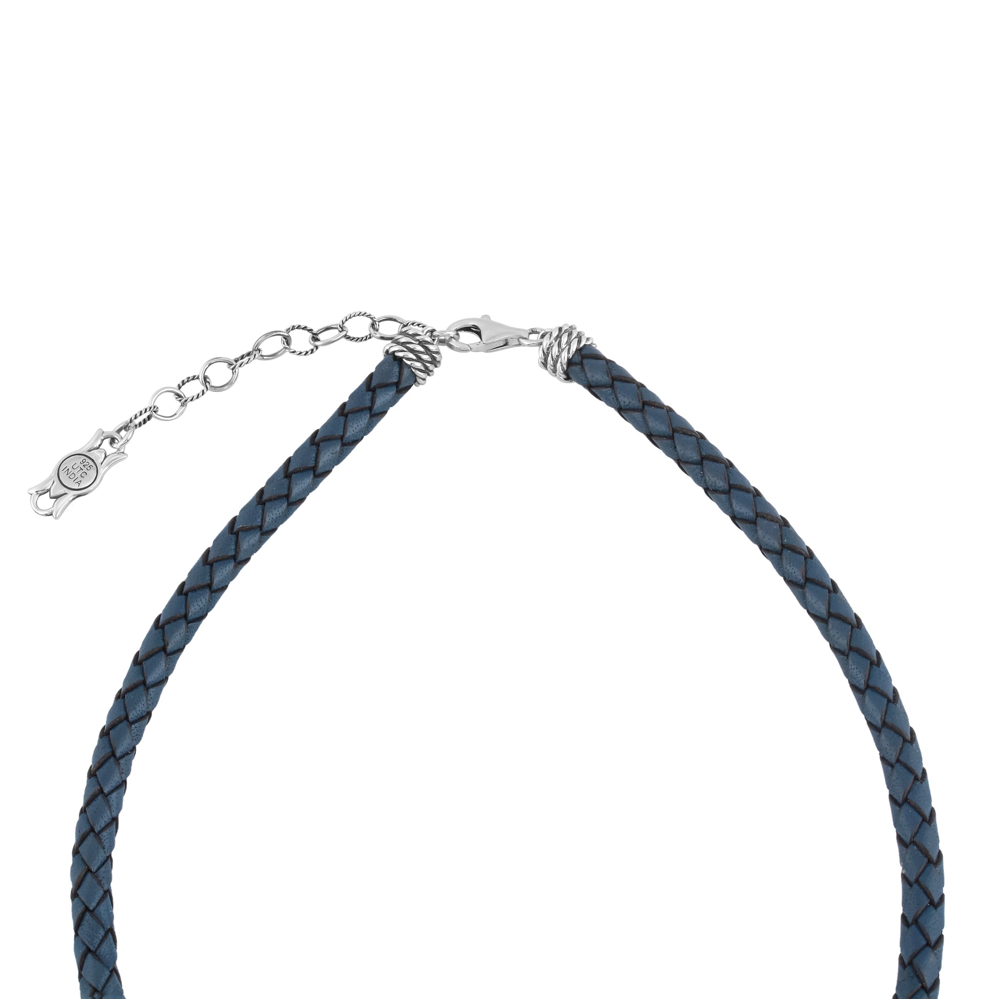 Braided Blue Genuine Leather Sterling Silver Necklace, 17-20 Inches