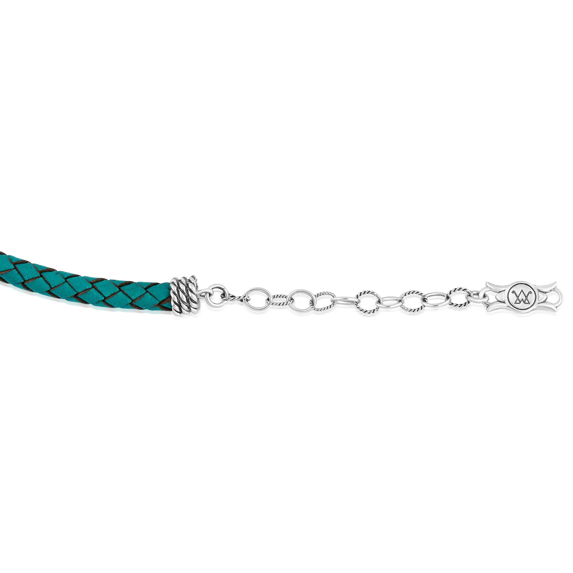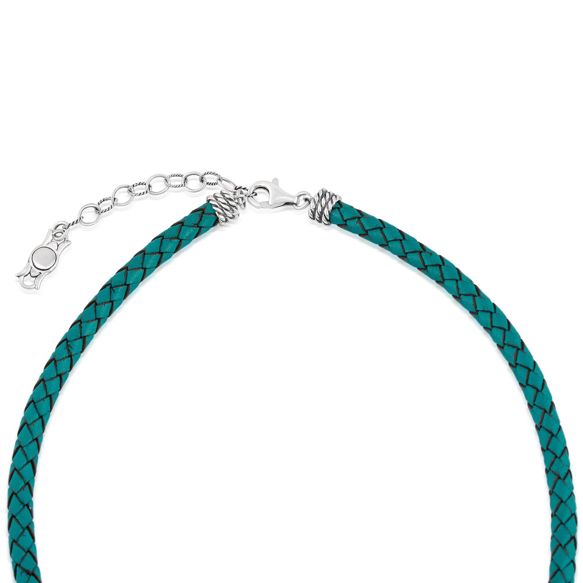 Braided Turquoise Genuine Leather Sterling Silver Necklace, 17-20 Inches