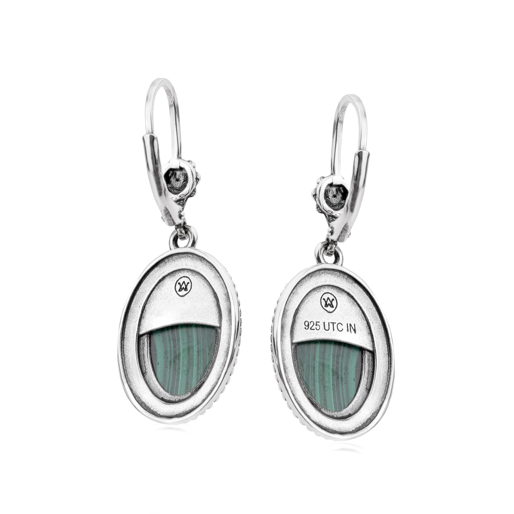 EXCLUSIVELY OURS! Sterling Silver Malachite Oval Drop Lever Back Earrings