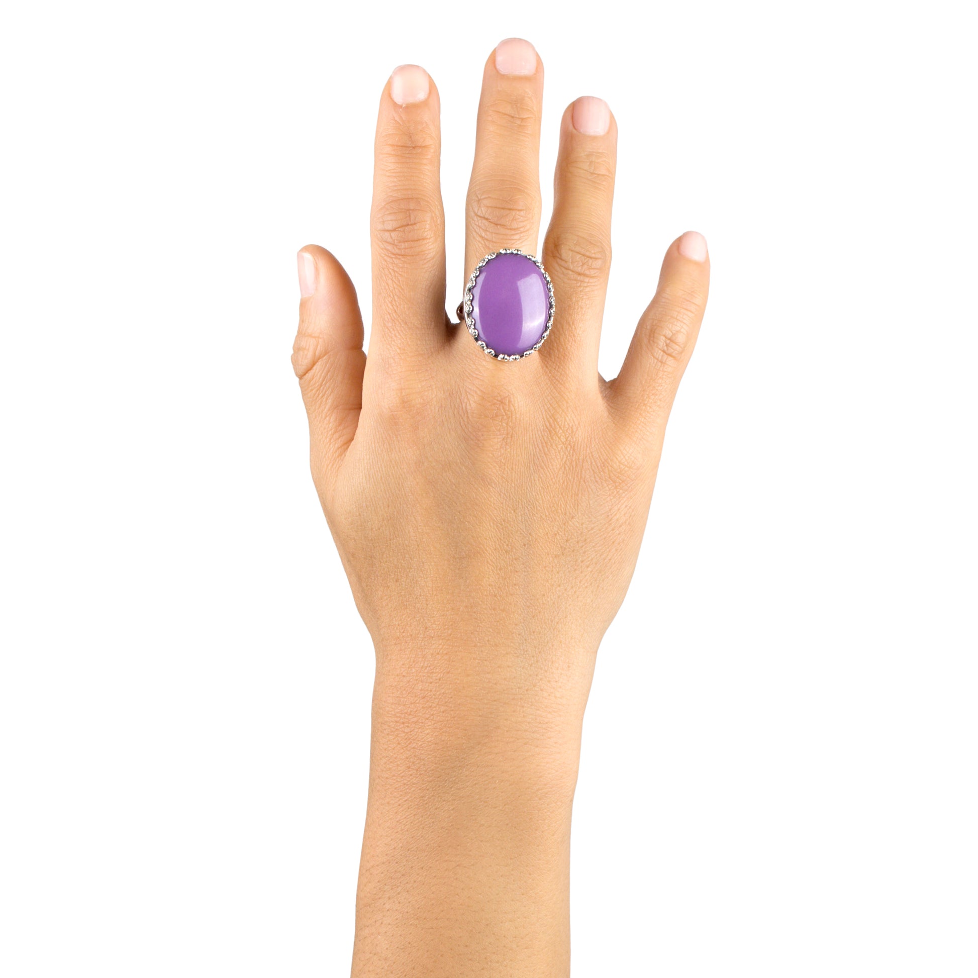 No cocktail ring in your collection can compete with this stylish statement piece. Boldly set on a concha flower-accented bezel and a split shank band, the 25x20mm Phosphosiderite gemstone cabochon can't be missed as it provides a pop of color and a most fashionable focal point for your wardrobe. This beauty is in a class of its own! Phosphosiderite gemstone is known to help open the heart to love, compassion, and forgiveness, and enhances one’s ability to connect with others on an emotional level. Every gemstone in the world is naturally unique, just like you! We carefully select every GIA certified gem, making your ring one-of-a-kind. You will find it will elevate any outfit! Whether at work, a date night with your honey or a special party or event– American West Jewelry will get you noticed. Get ready for compliments!