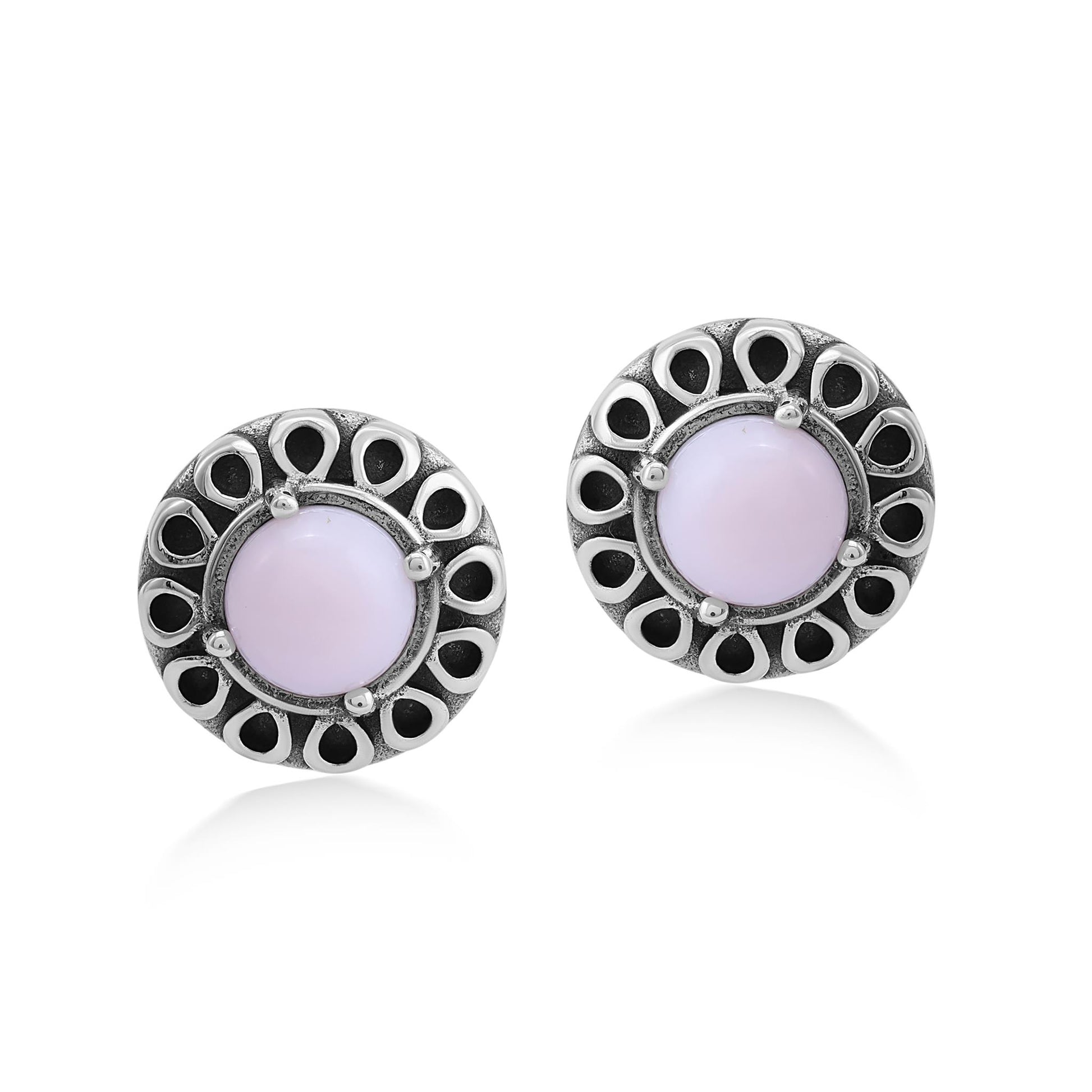 • Stud earrings feature sunburst designs; round, prong-set 6mm Pink Opal gemstones; slight oxidation to highlight the Sterling Silver details