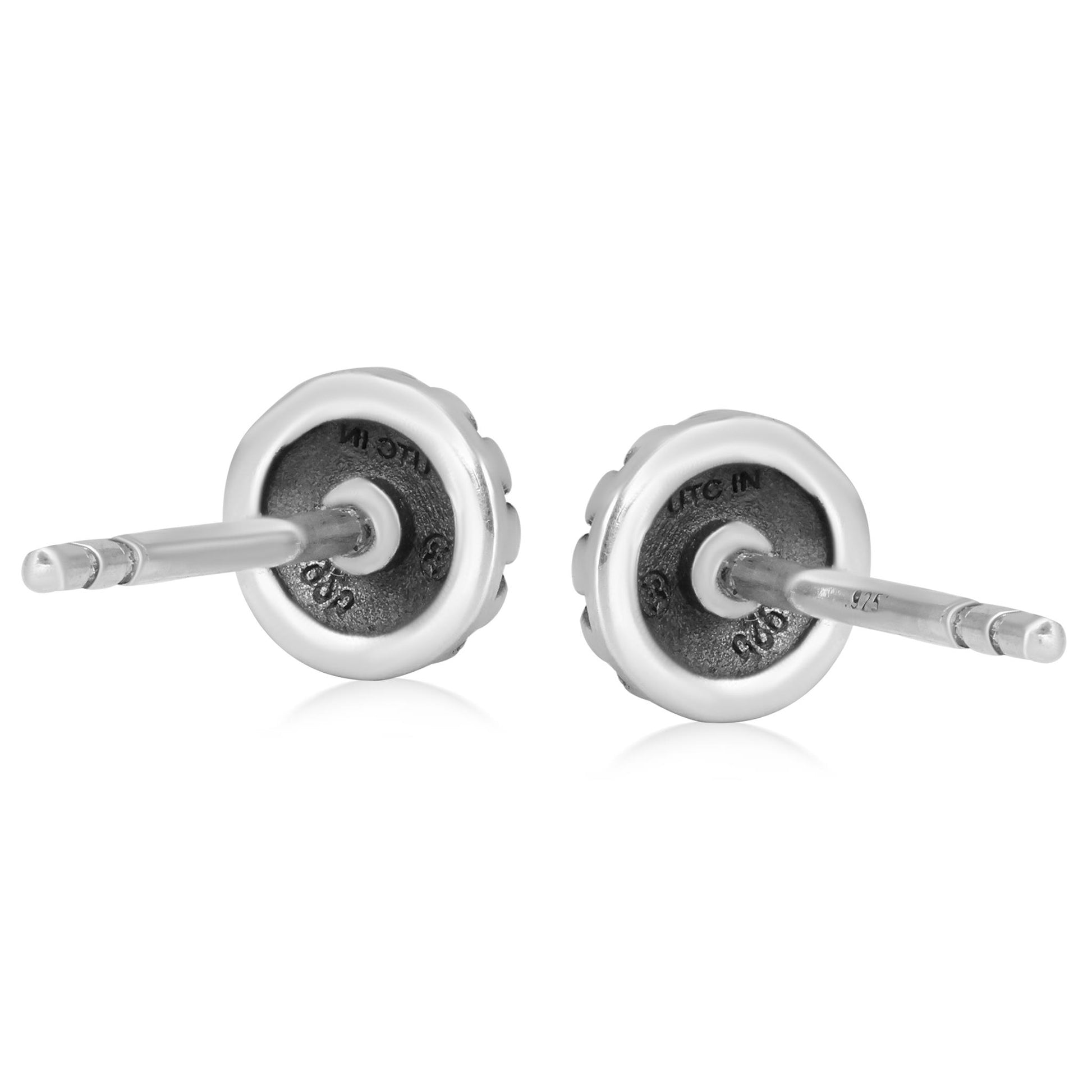 • Stud earrings feature sunburst designs; slight oxidation to highlight the Sterling Silver detailing