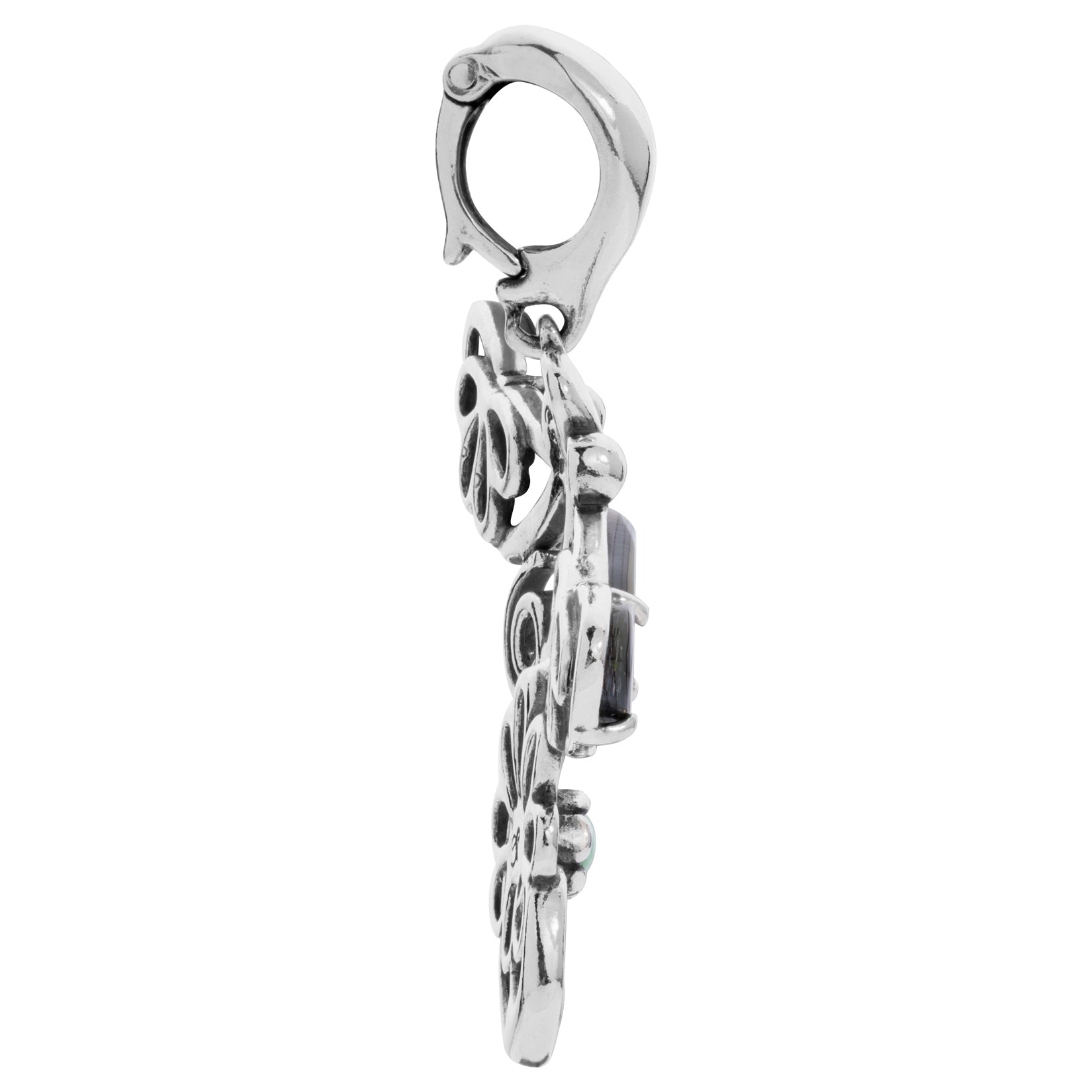 • Fritz Casuse designed dragonfly pendant enhancer with Abalone wings; flower with green Variscite center; oxidized; polished accents