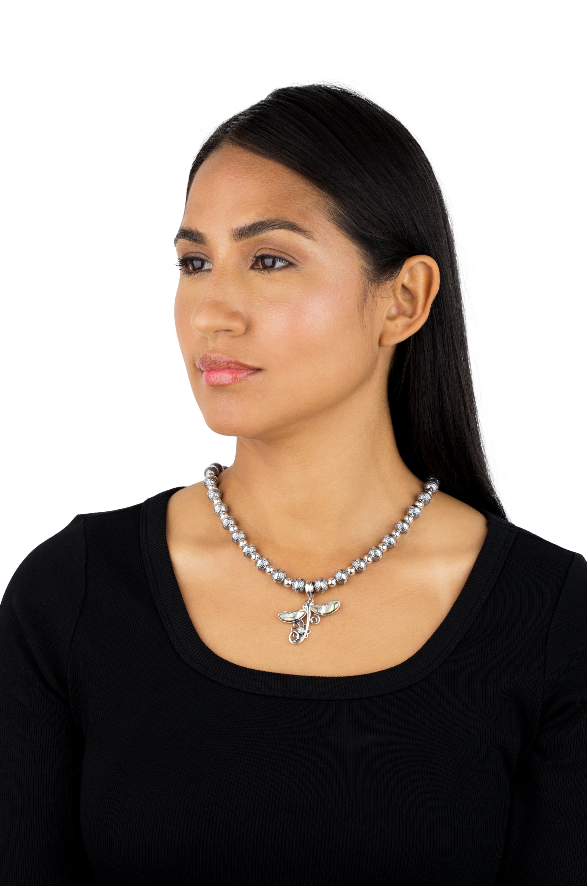 Sterling Silver Abalone Shell and Green Variscite Fritz Casuse Dragonfly Pendant Enhancer