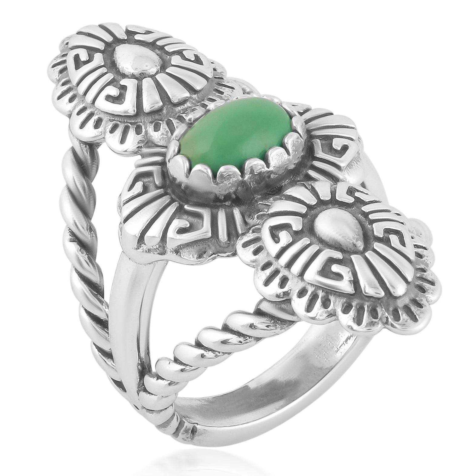 Sterling Silver Green Turquoise Concha Rope Ring, Sizes 5 to 10