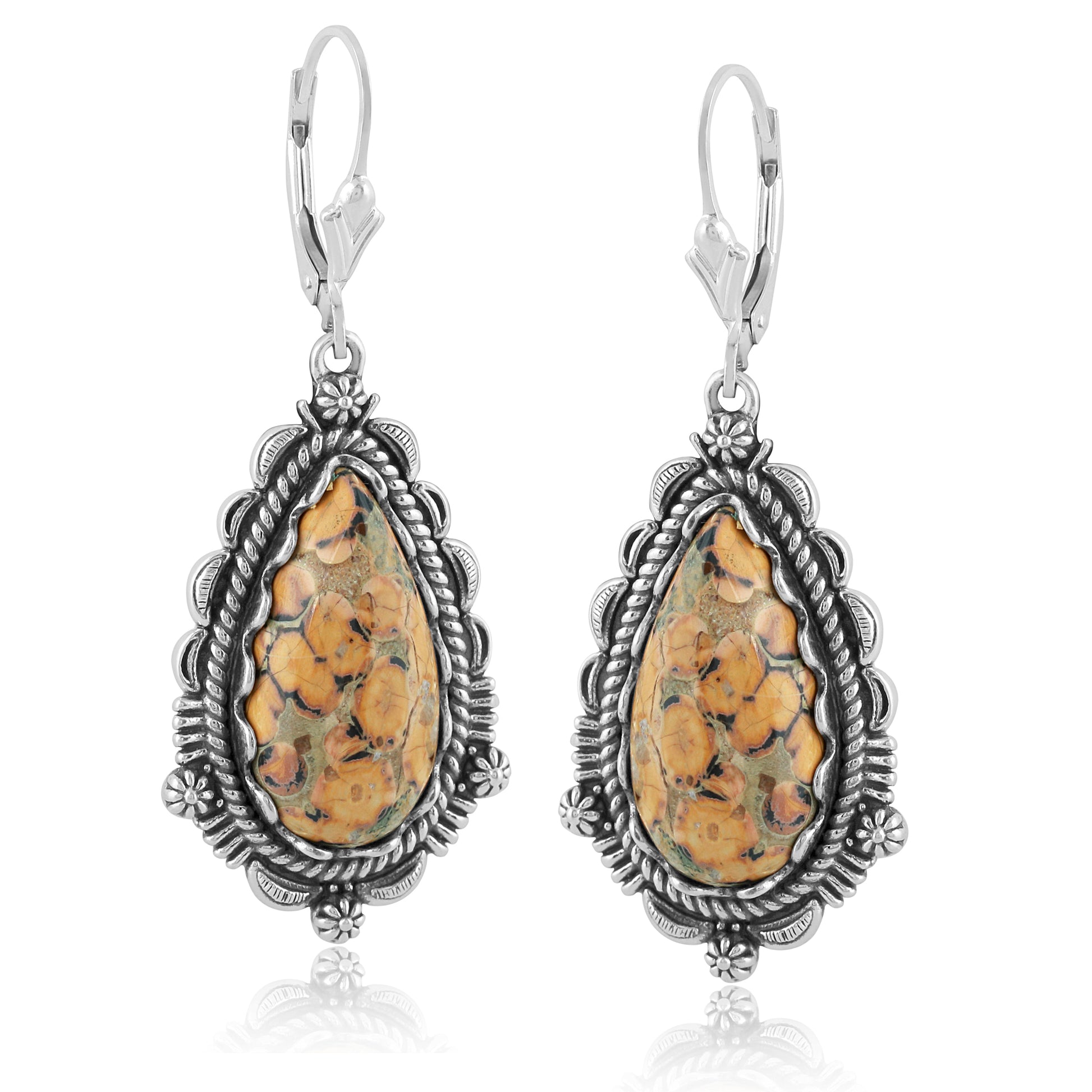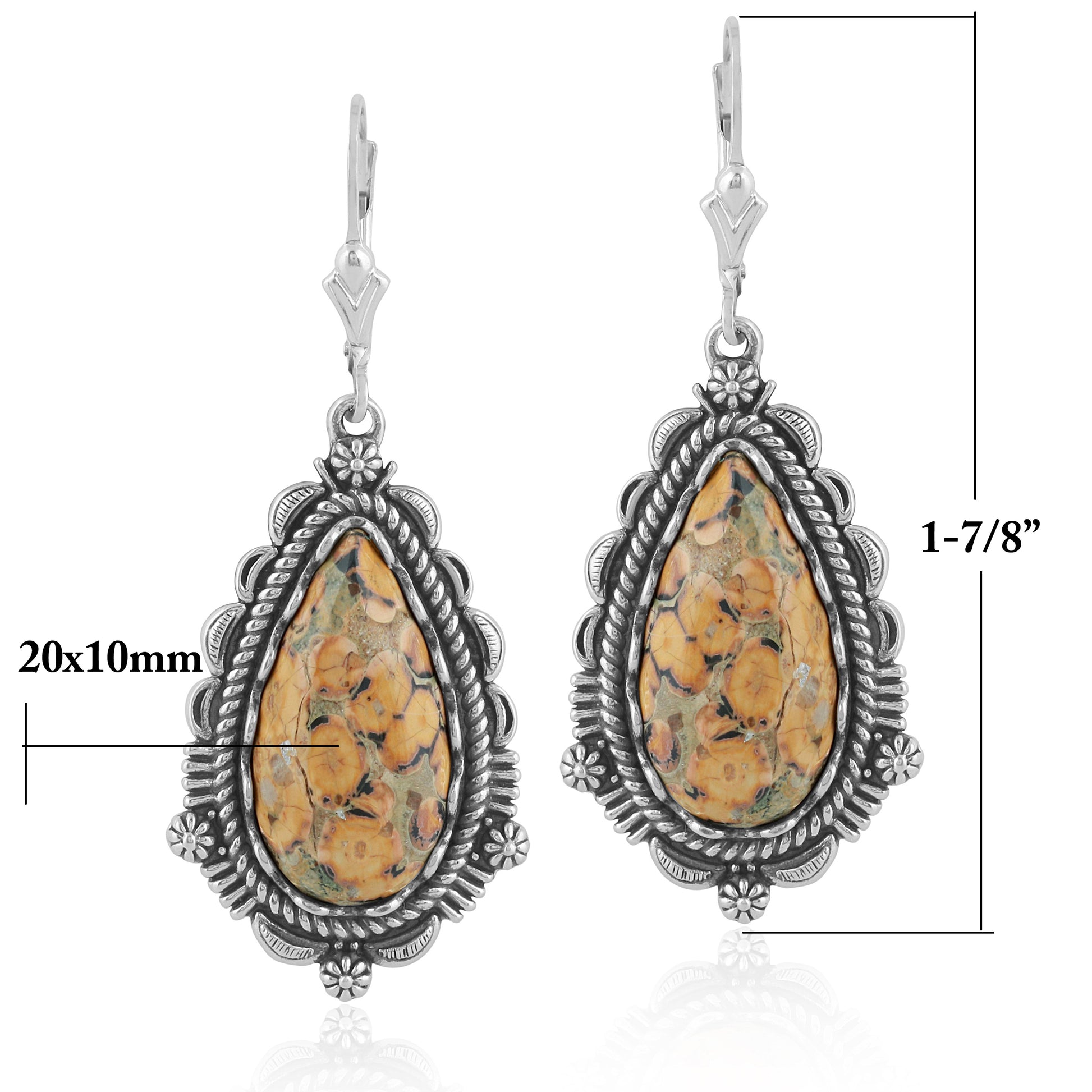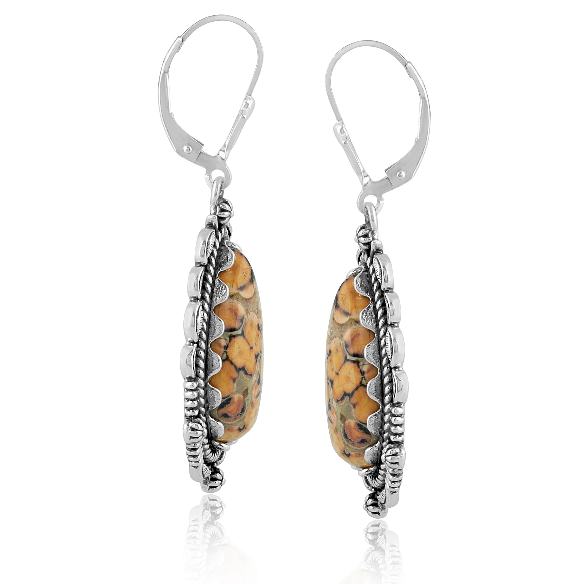 Sterling Silver Genuine Leopard Jasper Drop Earrings