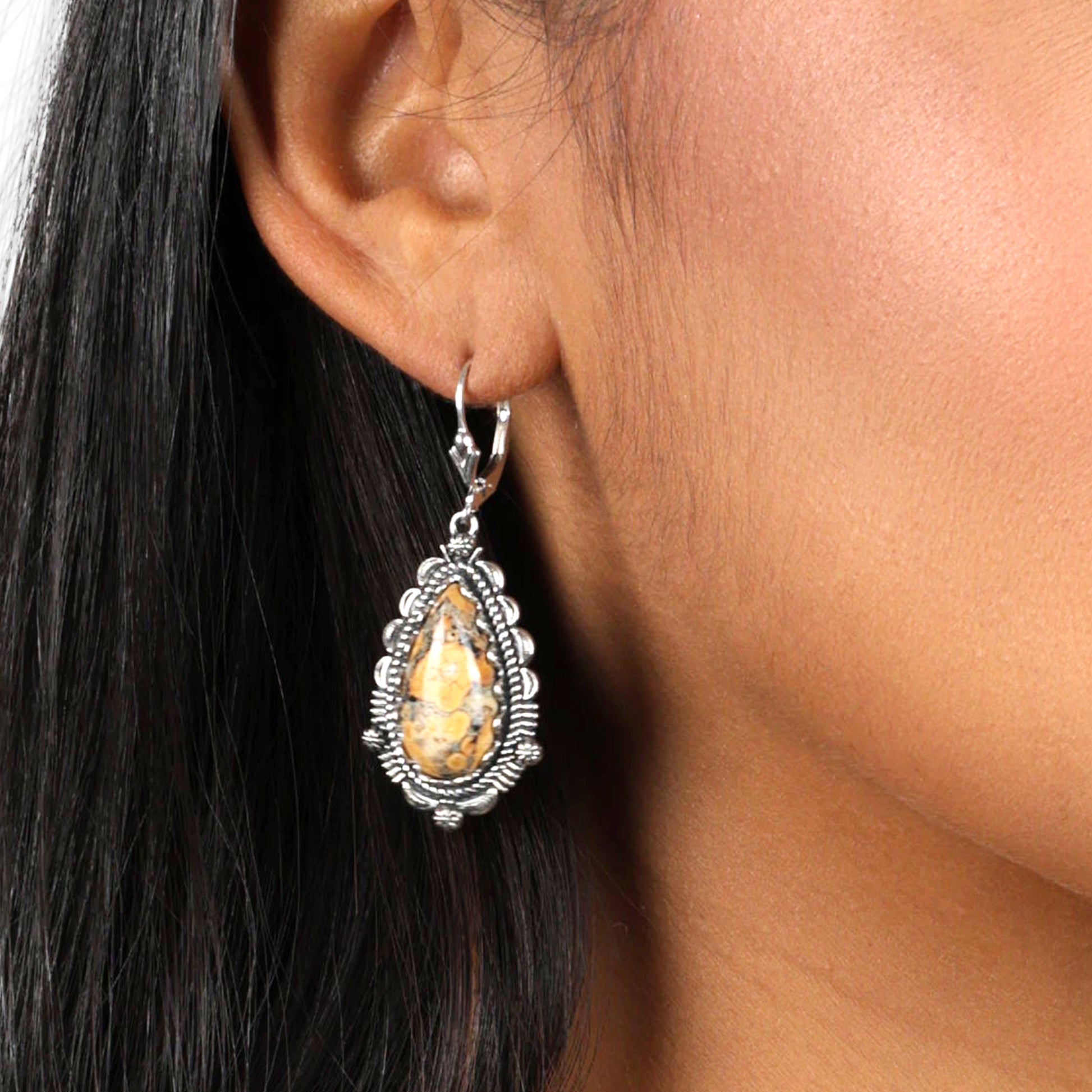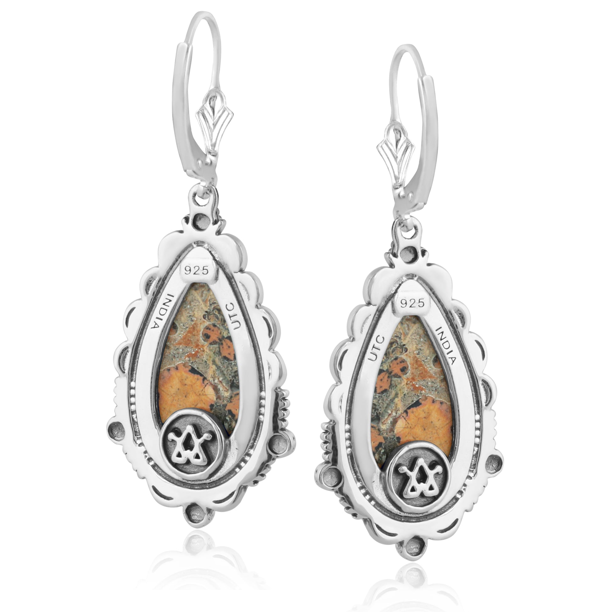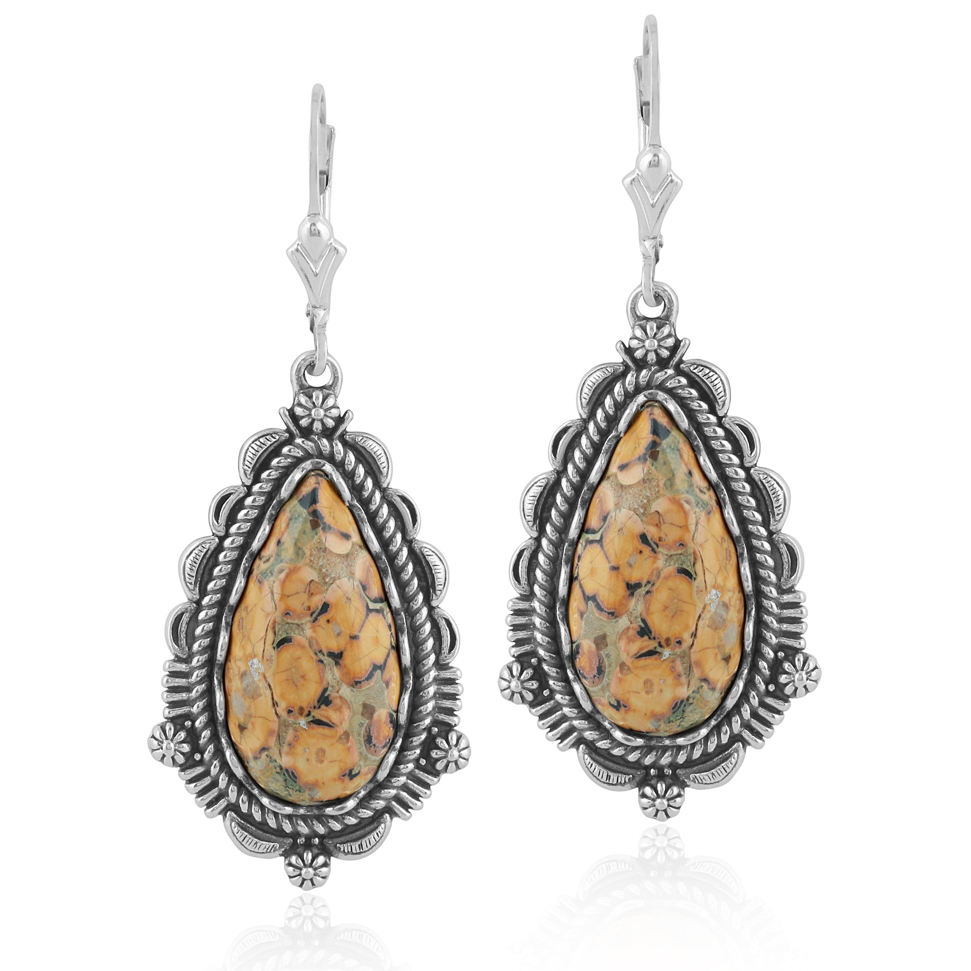 Sterling Silver Genuine Leopard Jasper Drop Earrings