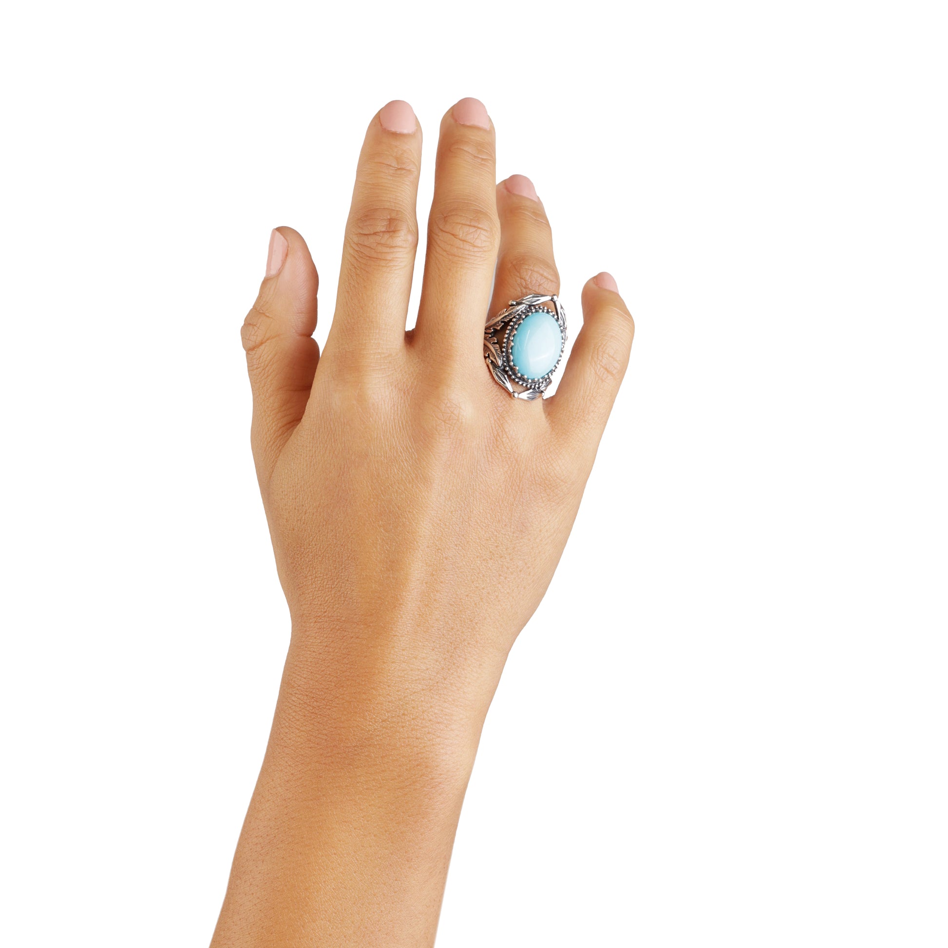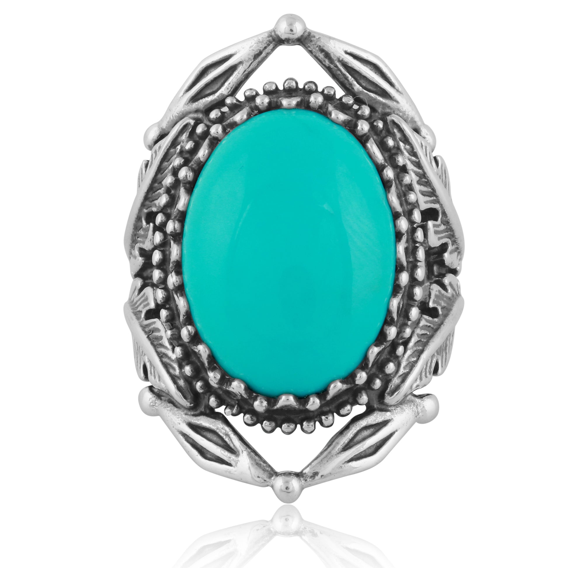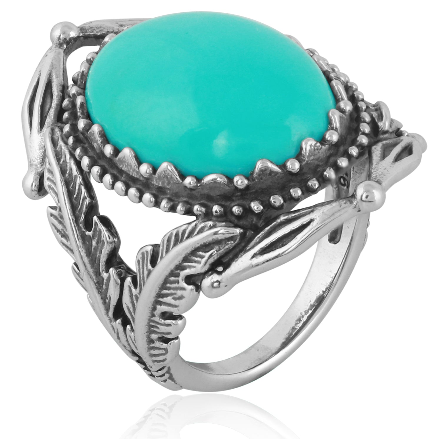 Introducing the beautiful American West Leaf Design ring. This versatile ring adds a splash of color to any look, featuring a large oval cabochon gemstone set in a decorative, beaded bezel birder and a split shank with 2 feathers. While every gemstone in the world is naturally unique, we carefully select the stones for each piece, making your ring one-of-a-kind. All stones are ethically sourced from conflict free mines. Shop the American West Jewelry collection today for more sterling silver genuine gemstone jewelry!