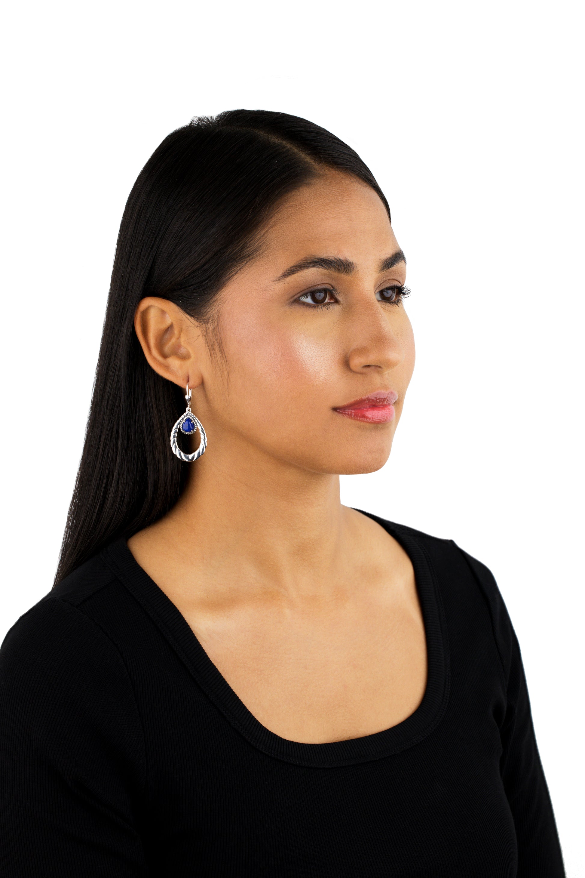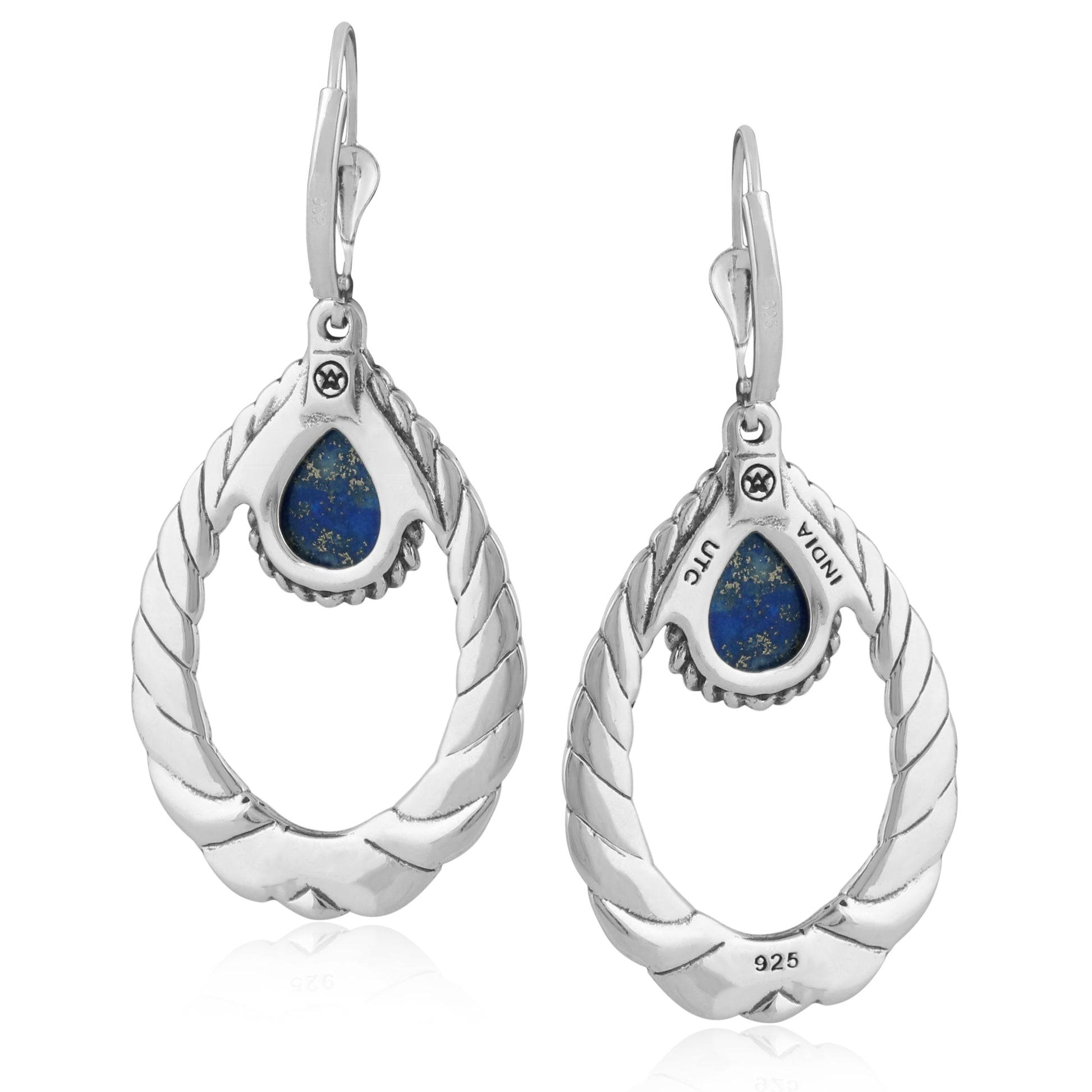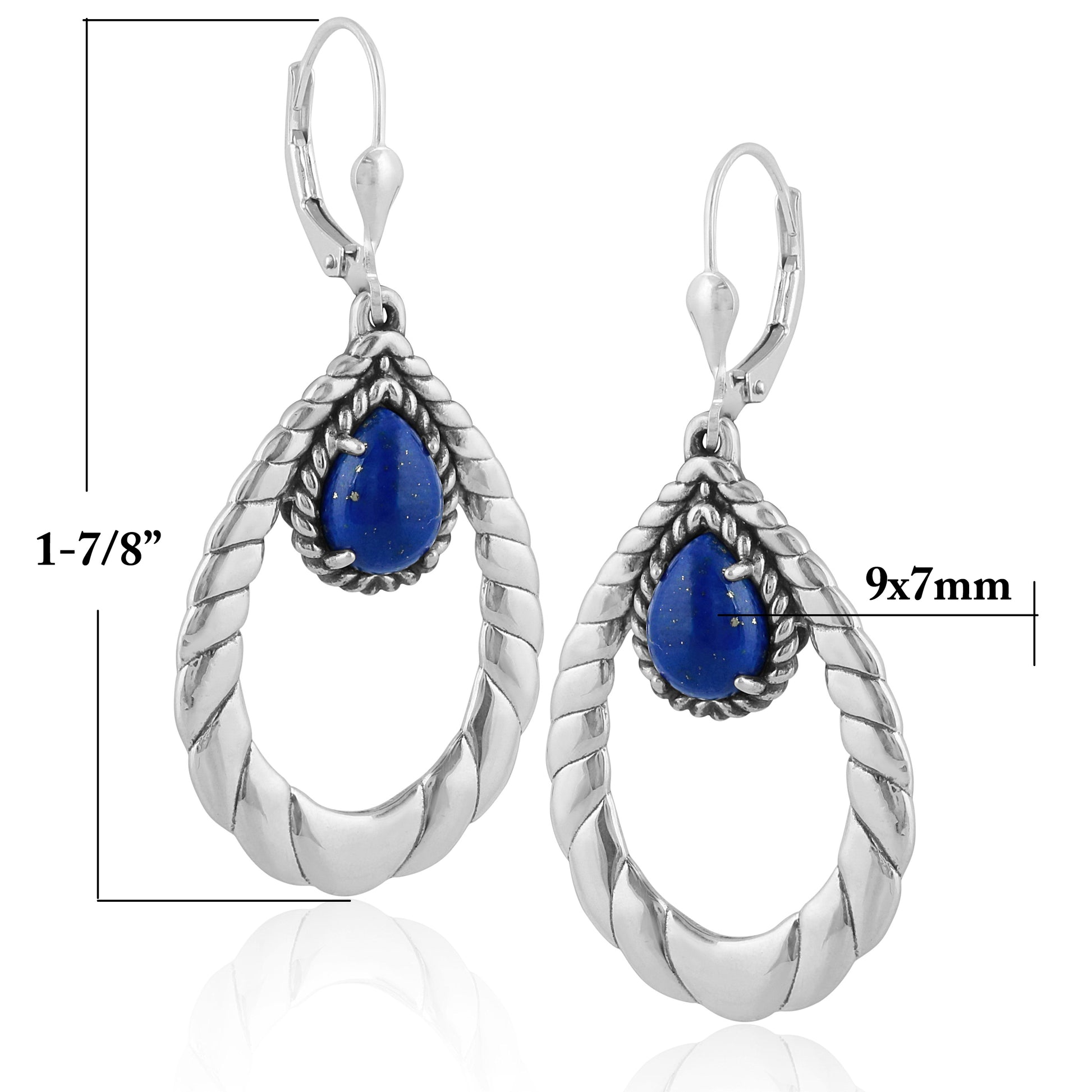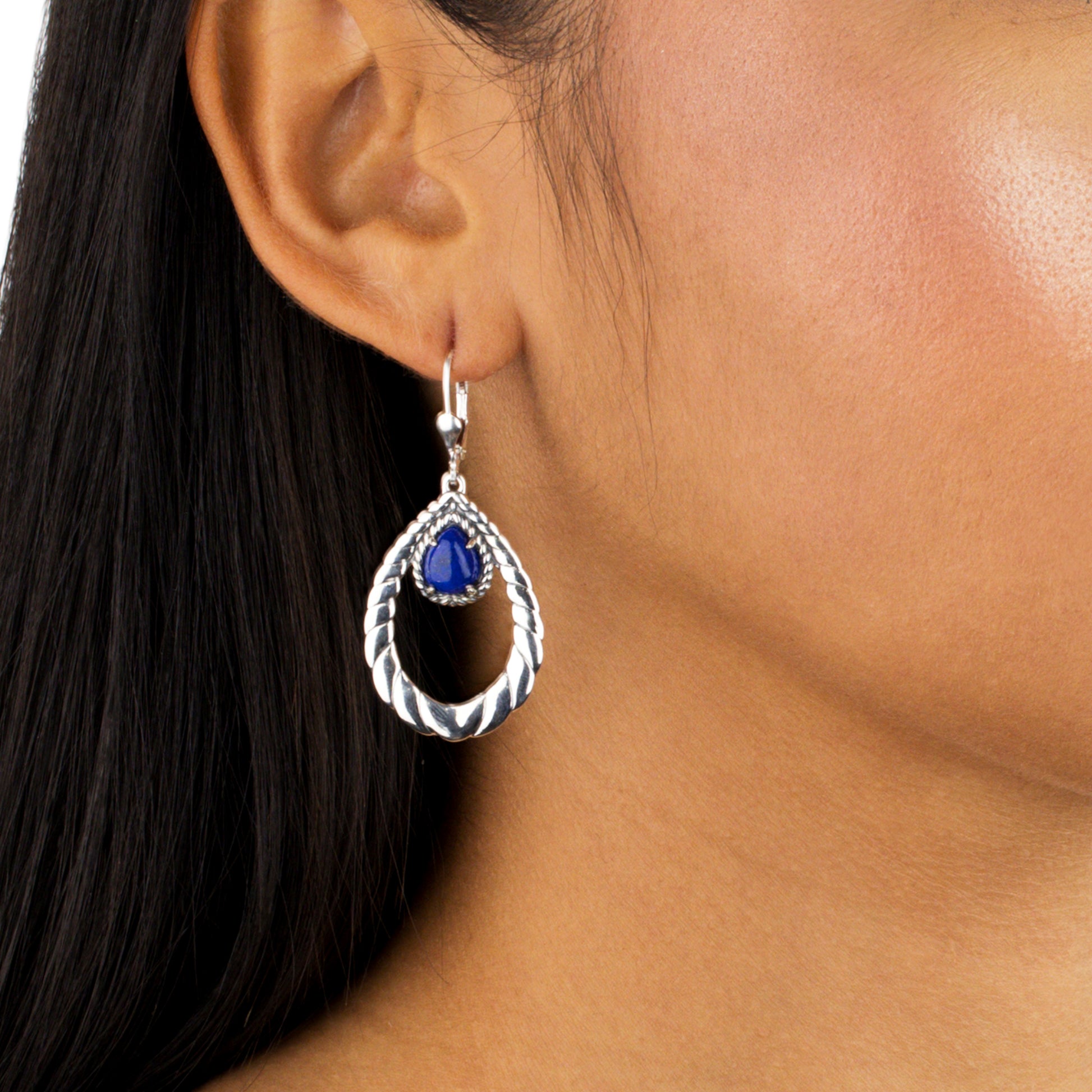Sterling Silver Lapis Pear Shape Lever Back Dangle Earrings