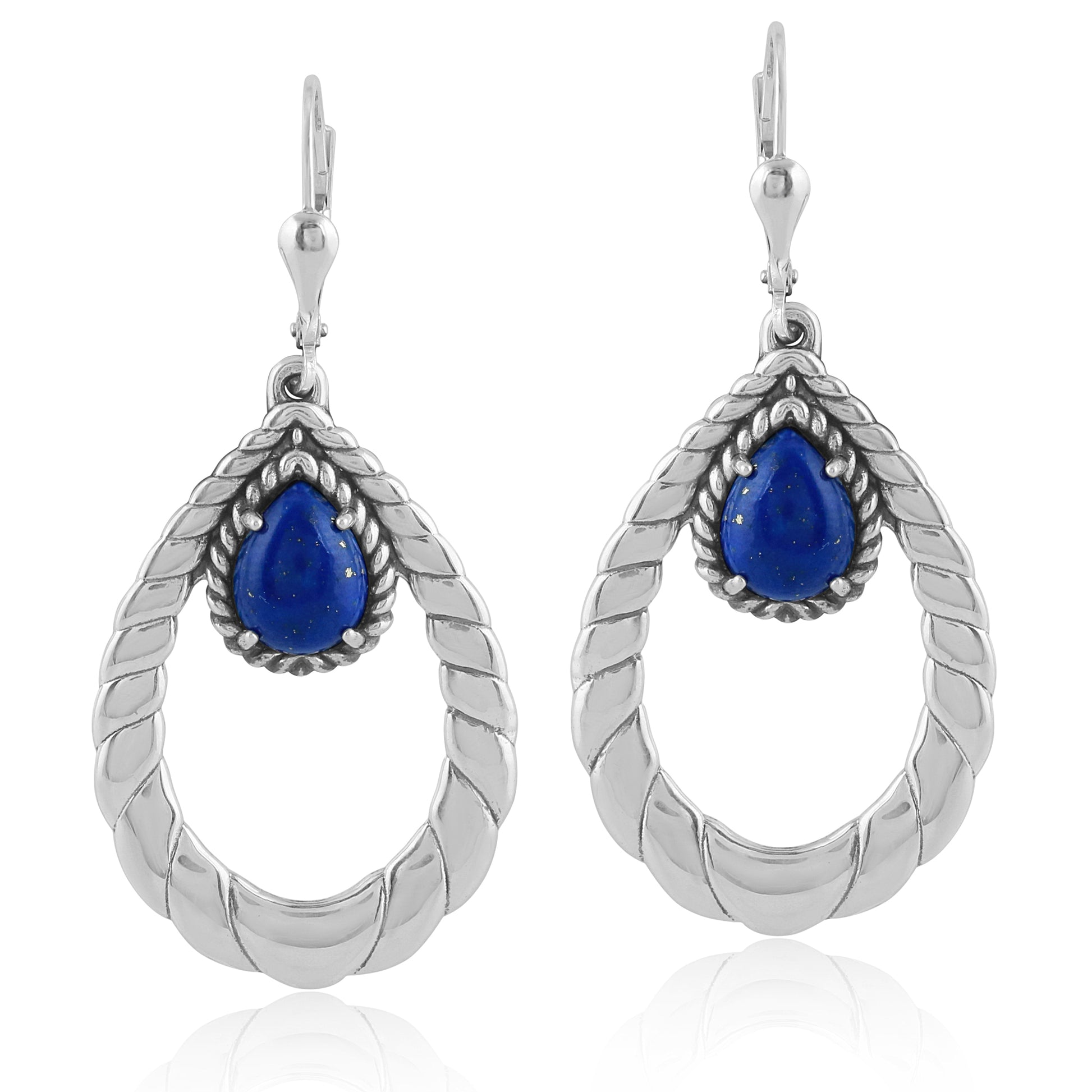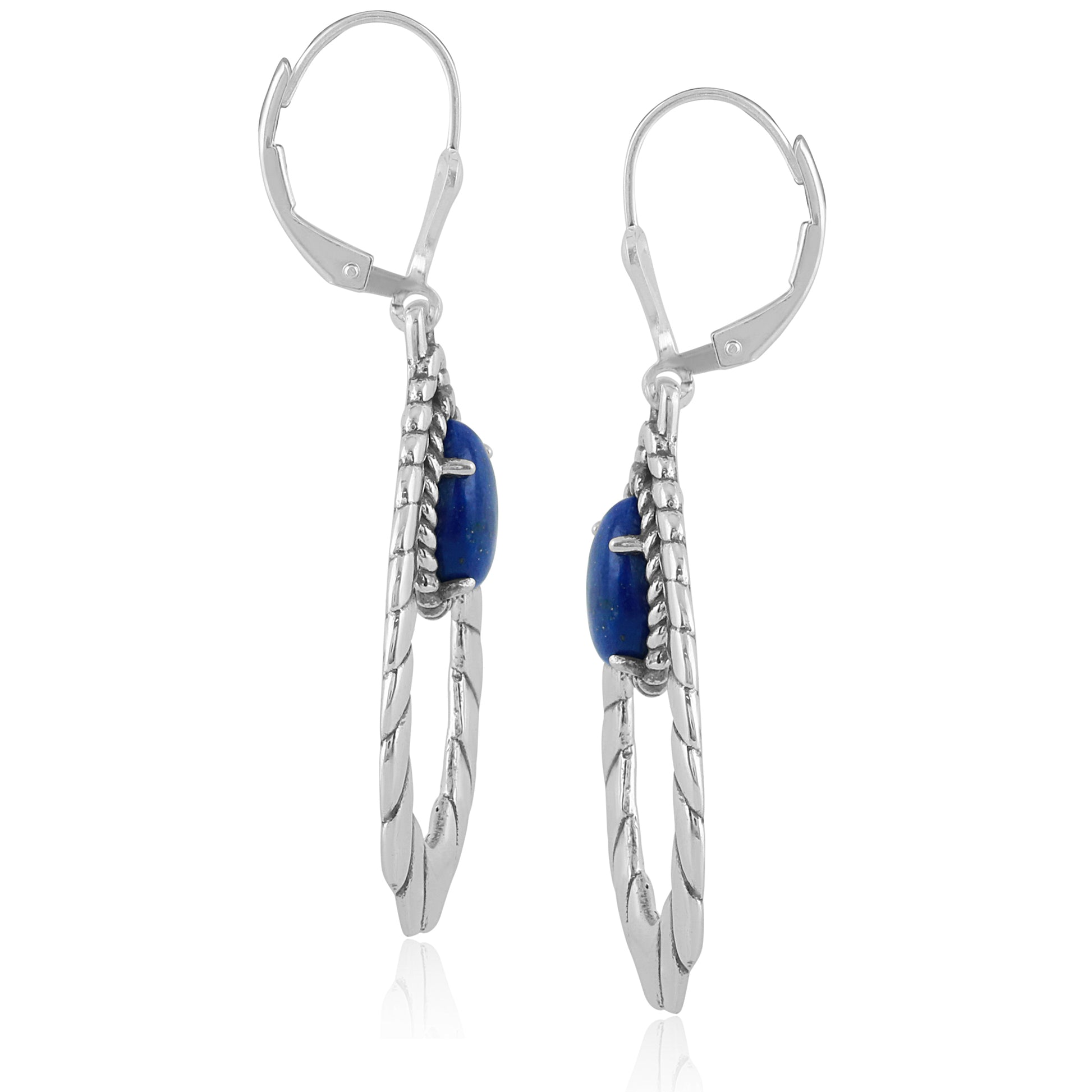 Introducing the American West Lever Back Earring, the perfect addition to any outfit! These stunning earrings feature 2 genuine gemstone cabochons set inside a timeless, oxidized sterling silver hoop. While every gemstone in the world is naturally unique, we carefully select the stones for each piece, making your earring one-of-a-kind. All stones are ethically sourced from conflict free mines. Shop the American West Jewelry collection today for more sterling silver genuine gemstone jewelry!