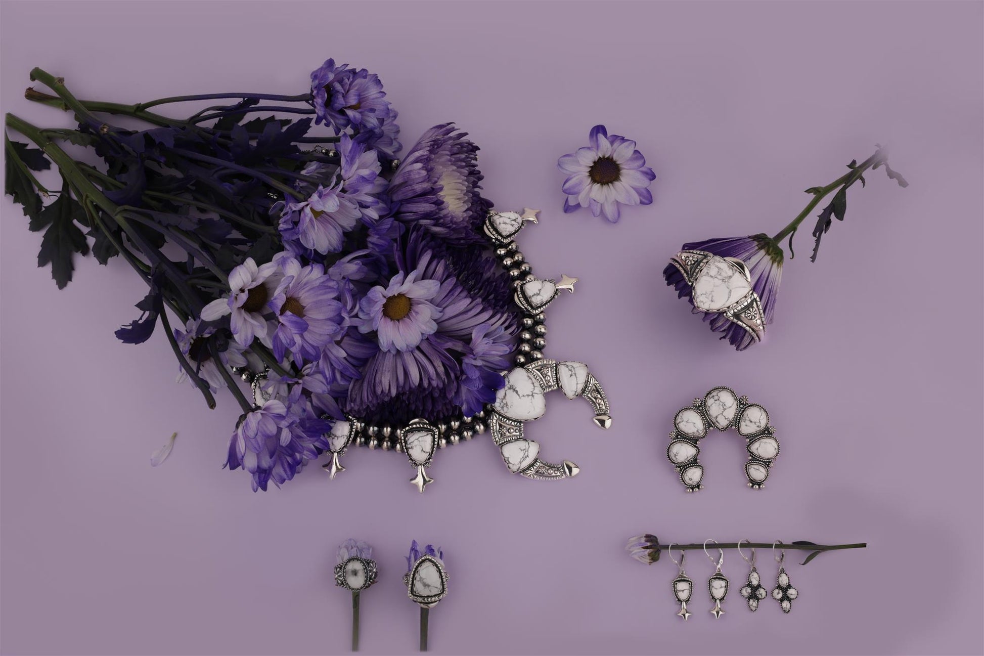 This naturally colorful Southwest-inspired Sterling Silver ring features an oval-shaped White Howlite gemstone in a serrated bezel rope frame with rope split shanks and a native flower design on each side, all with a polished oxidized finish. This stunning ring is available in a wide range of sizes for every finger and measures approximately .75 inches wide by .6 inches long. Every gemstone in the world is naturally unique, just like you! We carefully select the GIA certified gems for each piece, making your ring one-of-a-kind. You will find this ring will elevate any outfit! Whether at work, a date night with your honey or a special party or event– American West Jewelry will get you noticed. Get ready for compliments!