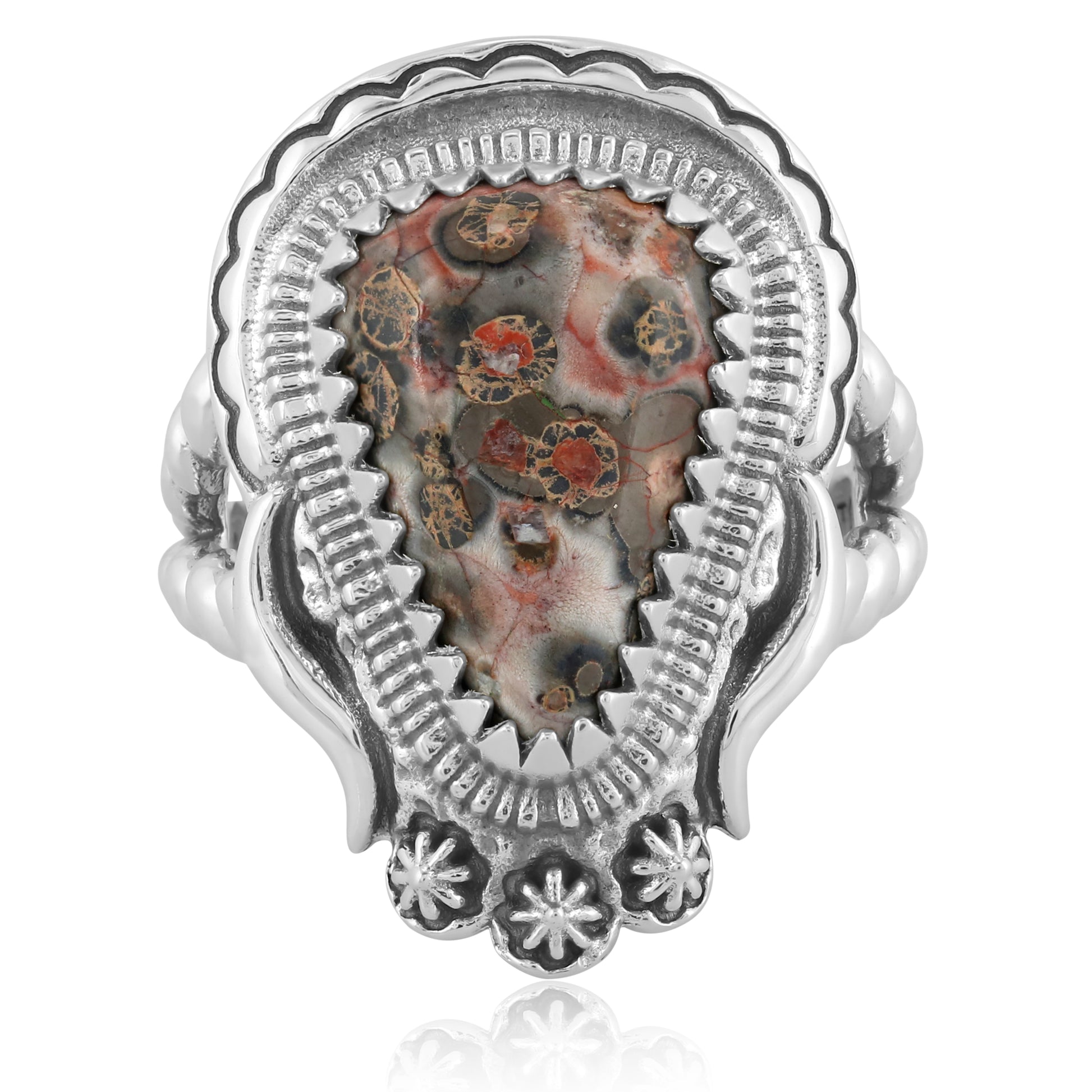 Sterling Silver Leopard Jasper Rope Ring, Sizes 6 - 11