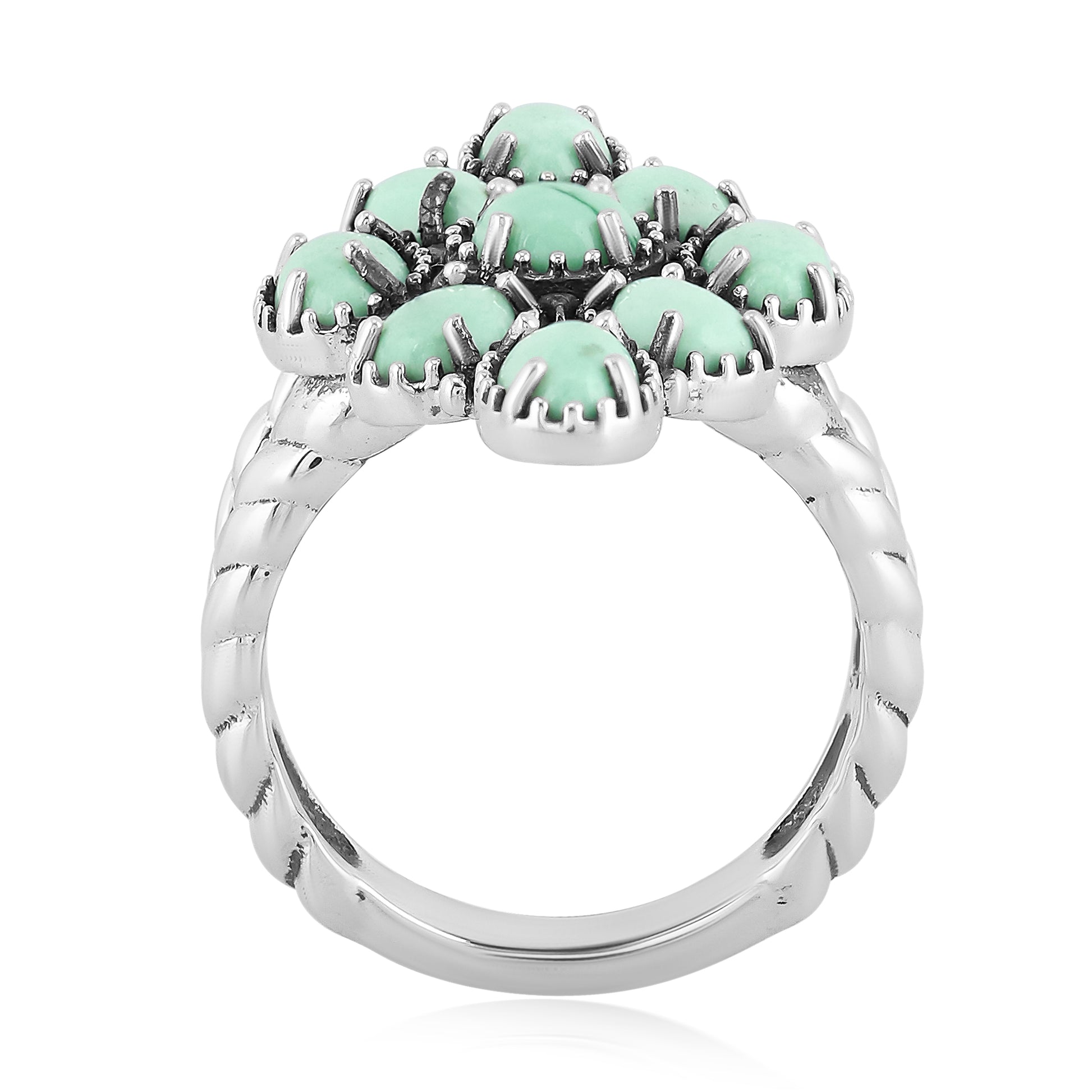 Sterling Silver Green Variscite Wildflower Cluster Ring, Sizes 6 to 11