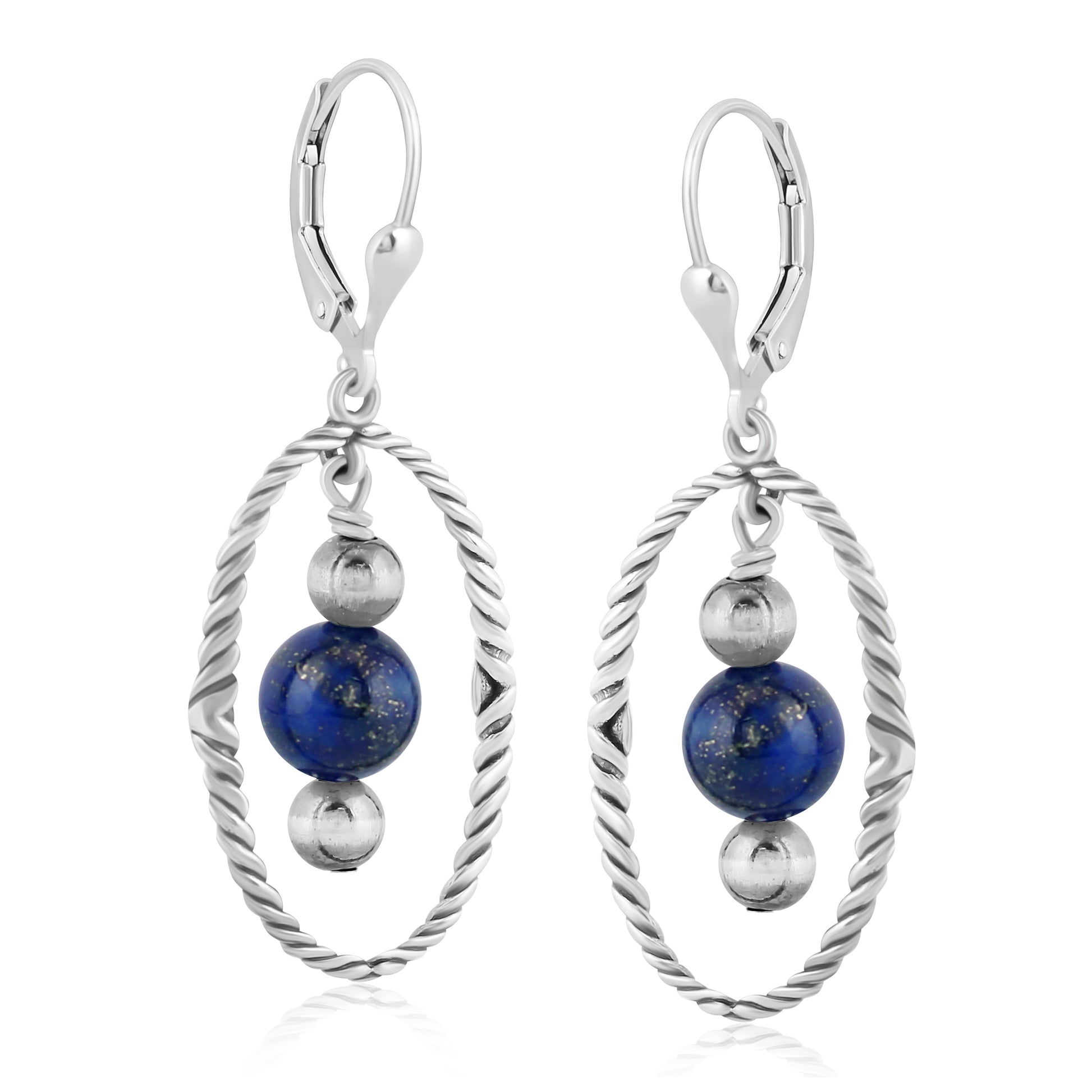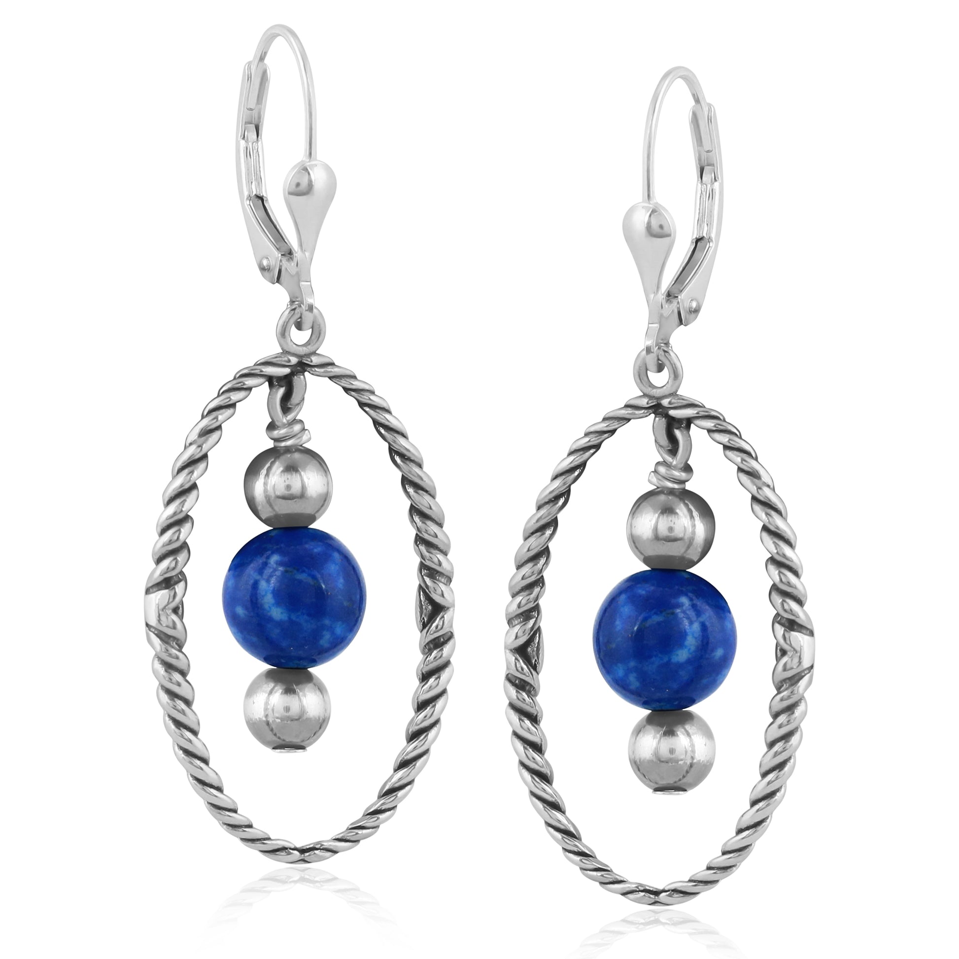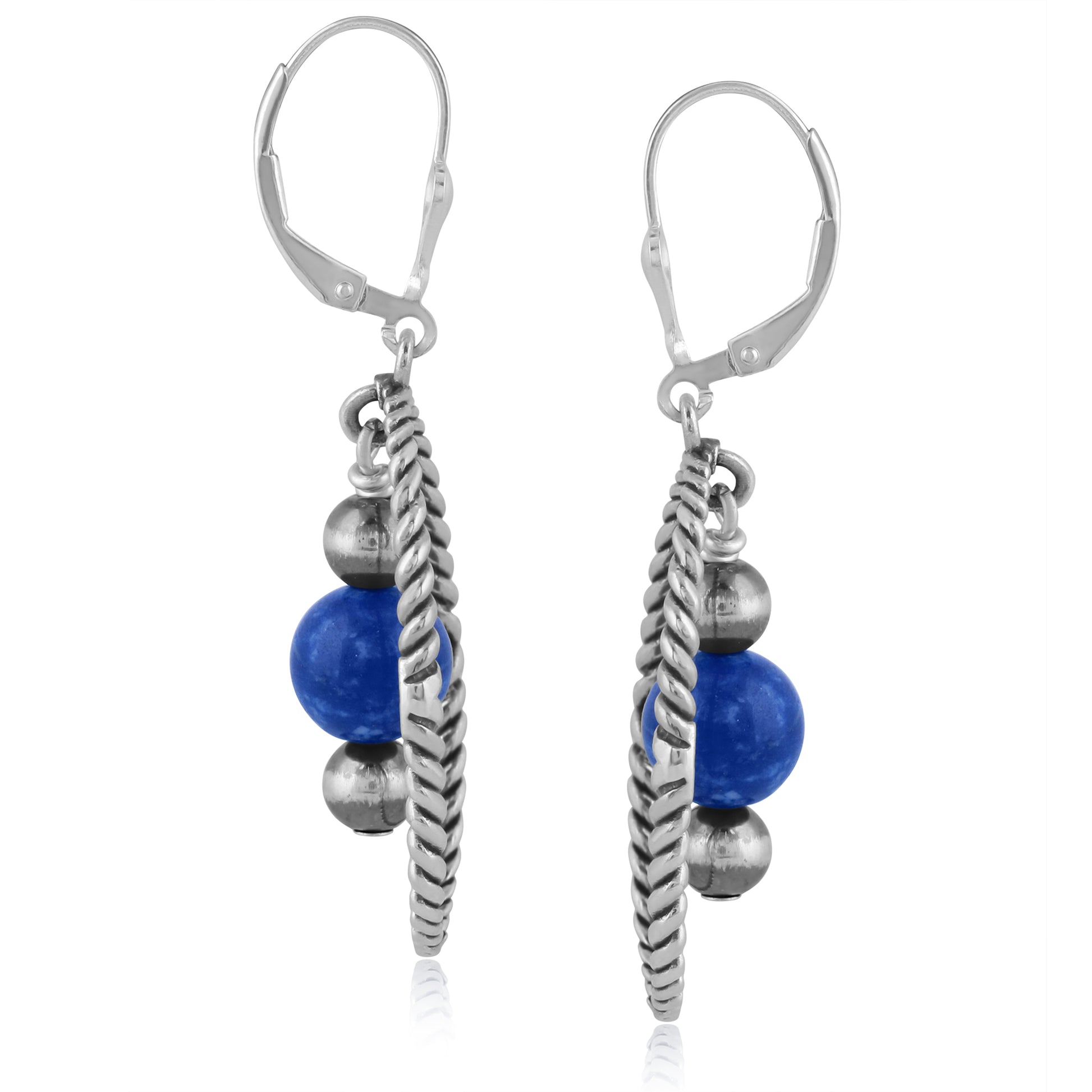 Southwestern Sterling Silver Rope and Lapis Bead Drop Earrings
