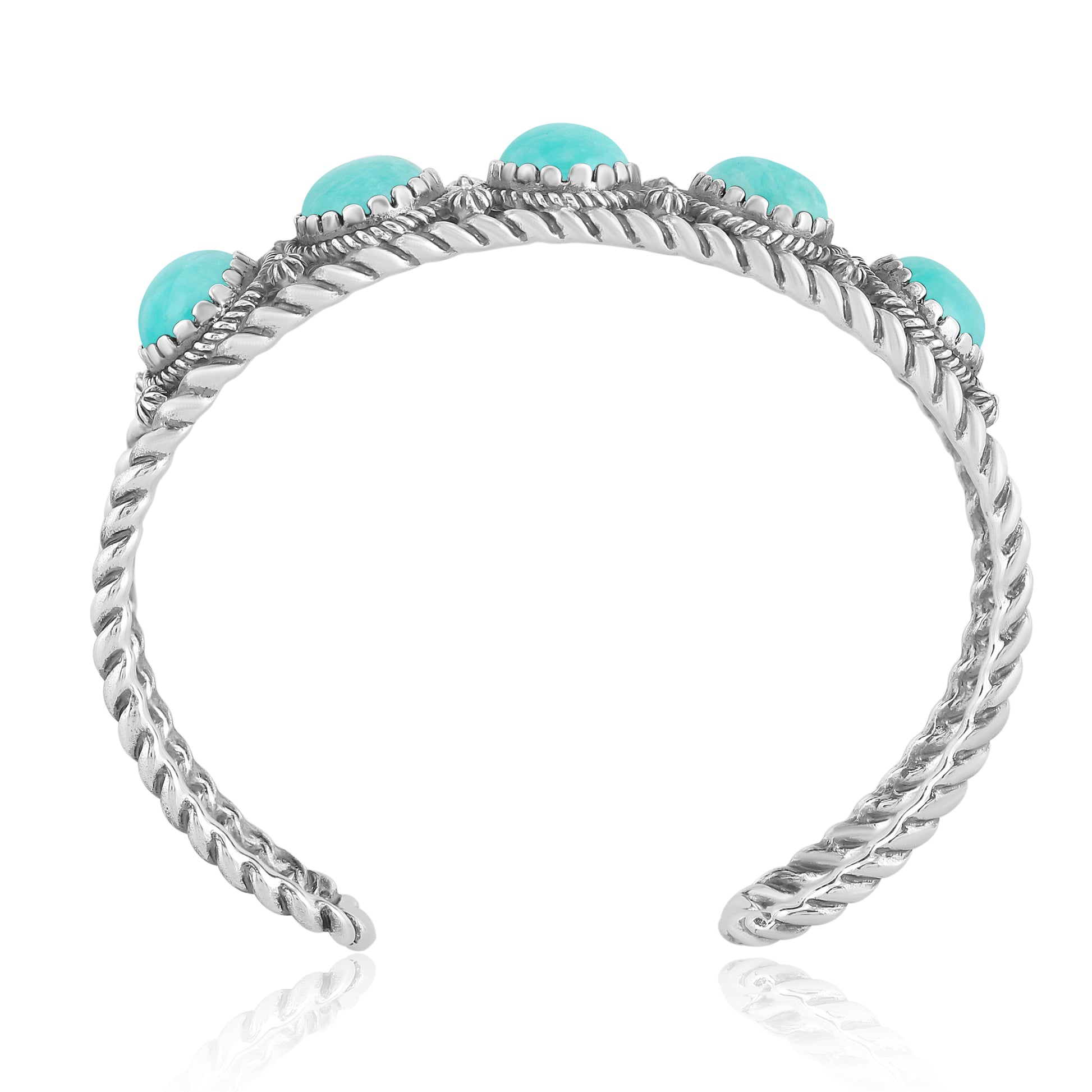 Sterling Silver Amazonite Rope Design 5-Stone Cuff Bracelet, Sizes Small to Large
