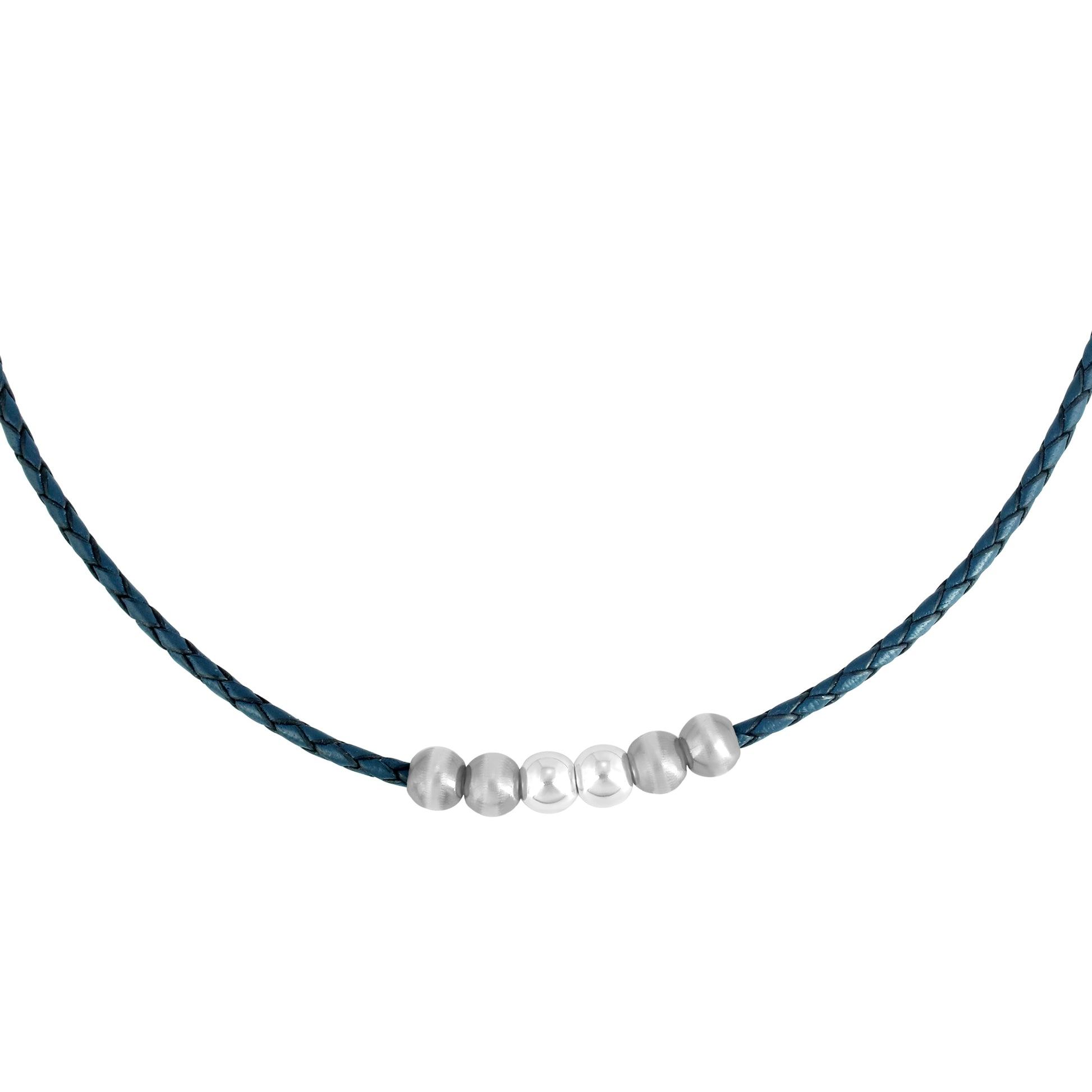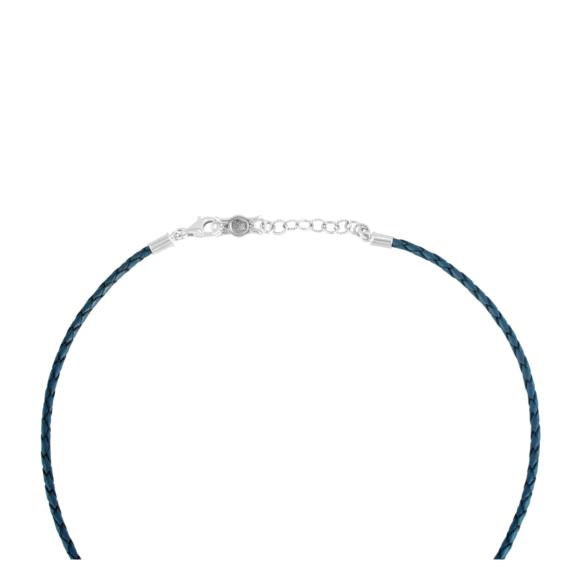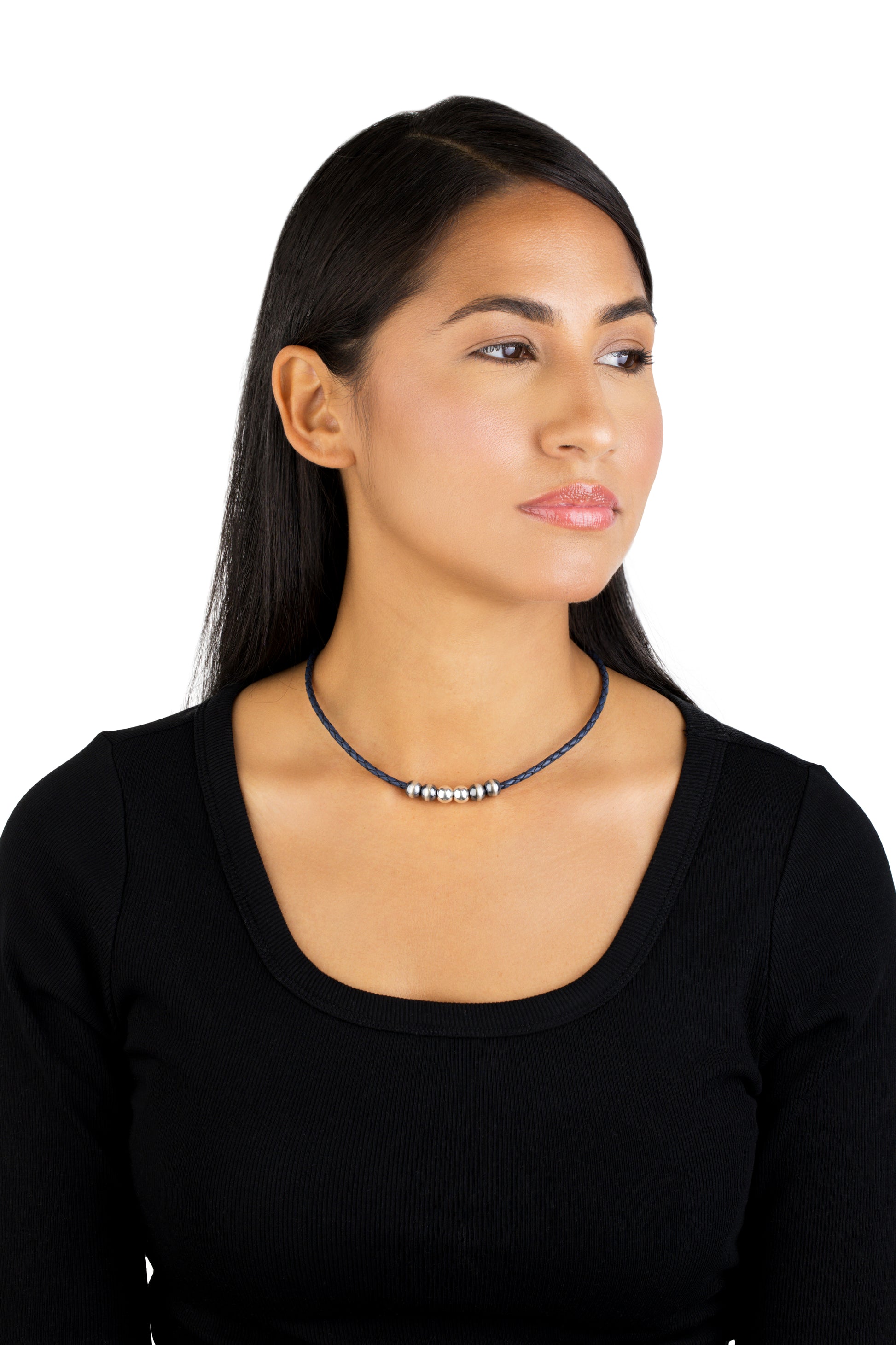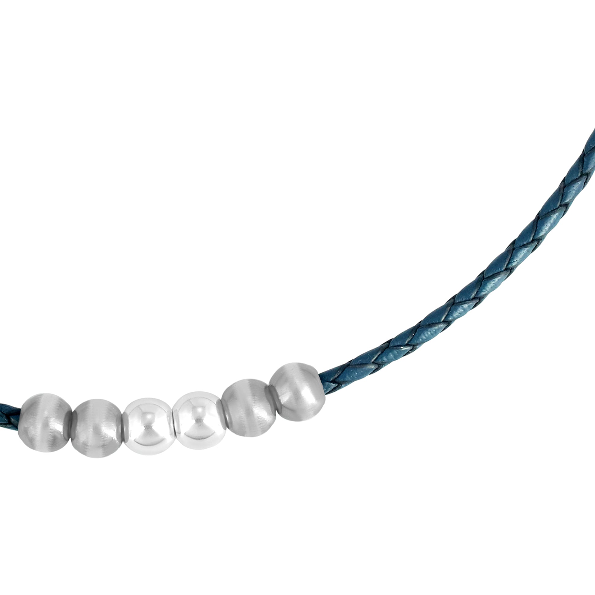 Sterling Silver Braided Blue Genuine Leather Beaded Necklace 17 or 20 Inches