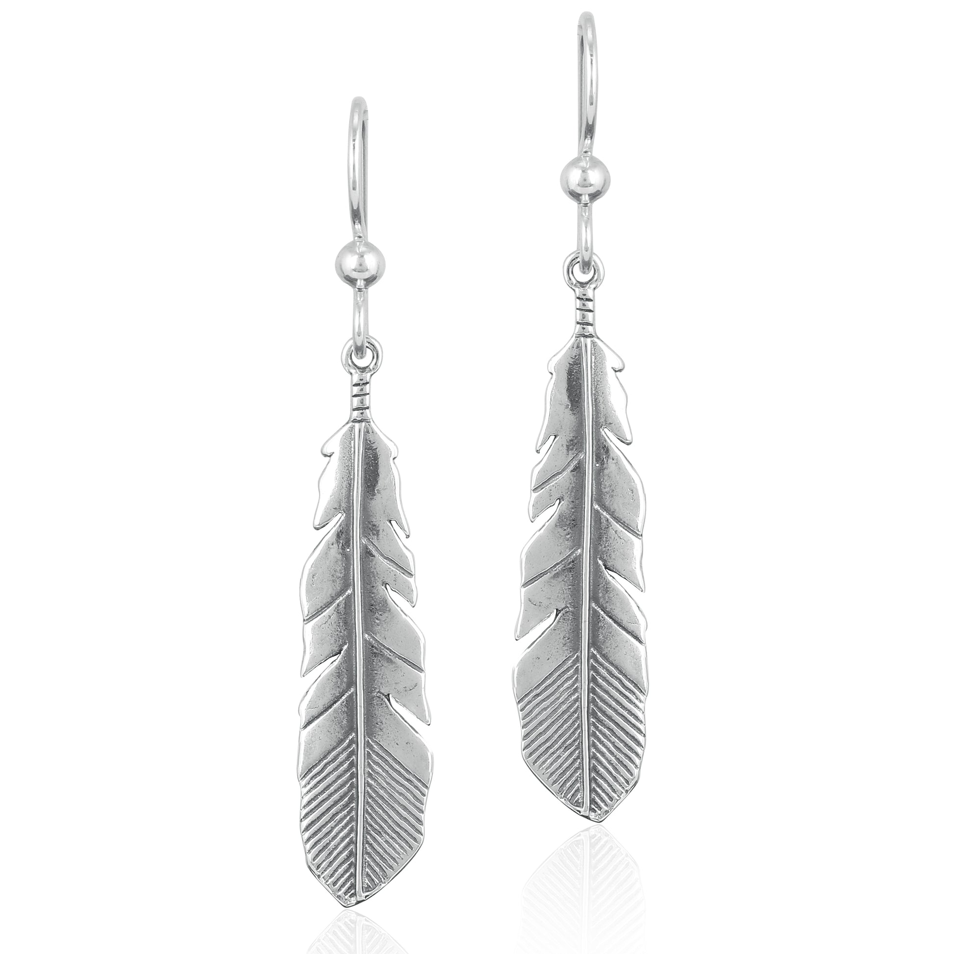 • Dangle Earrings feature stunning feather design details with a polished, oxidized finish