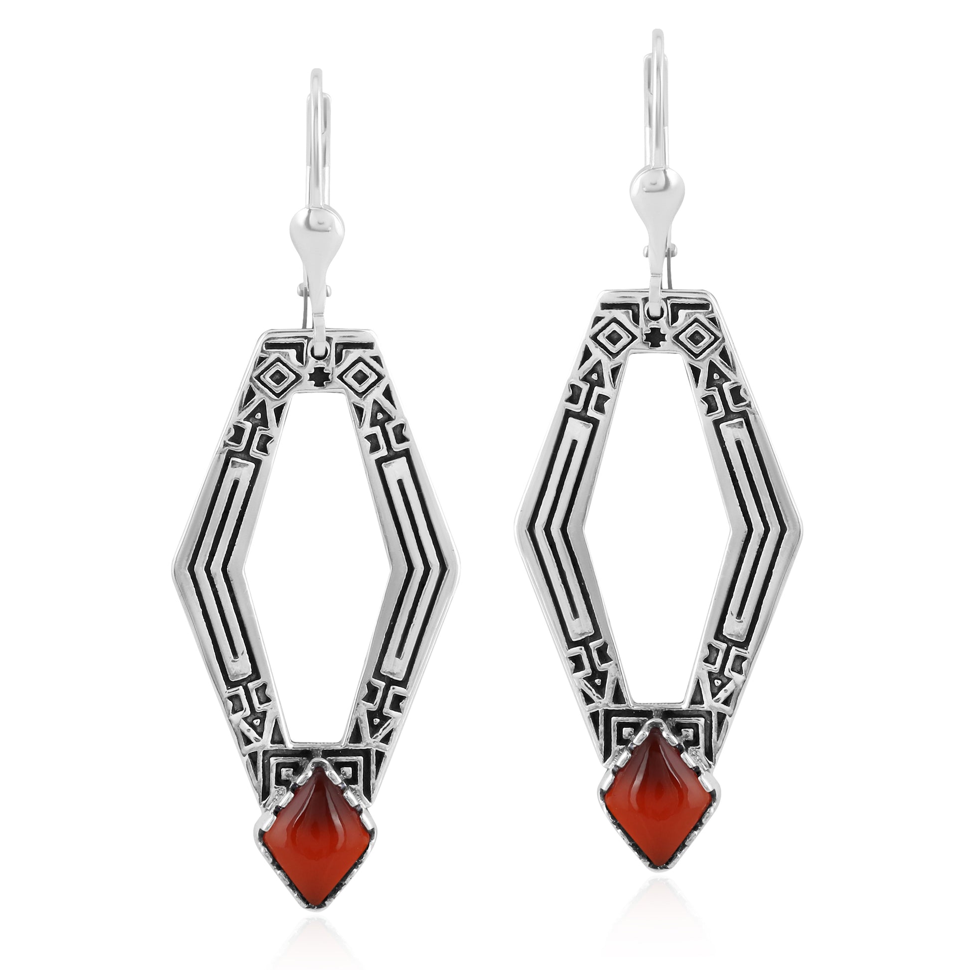Sterling Silver Geometric Shape Red Agate Gemstone Lever Back Earrings
