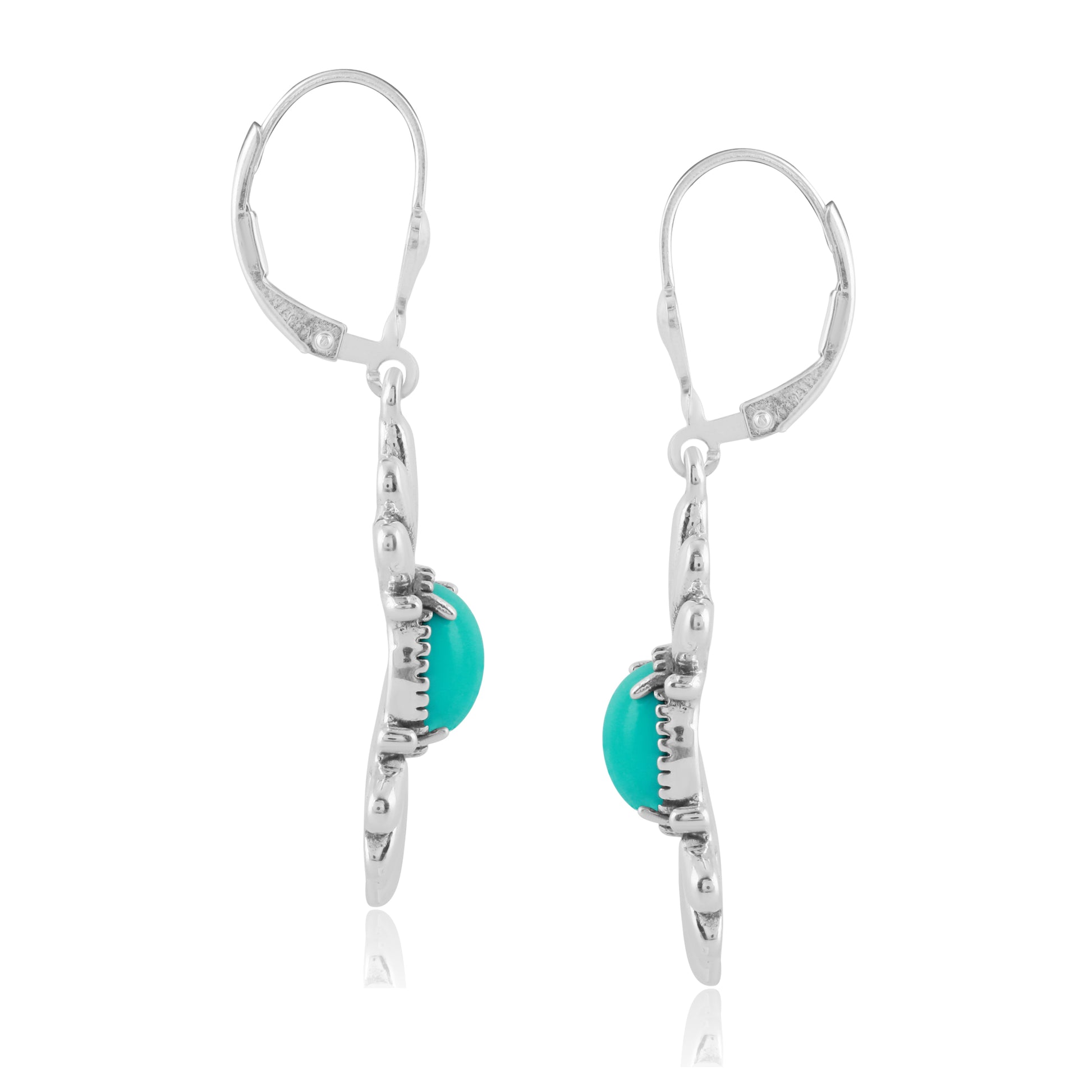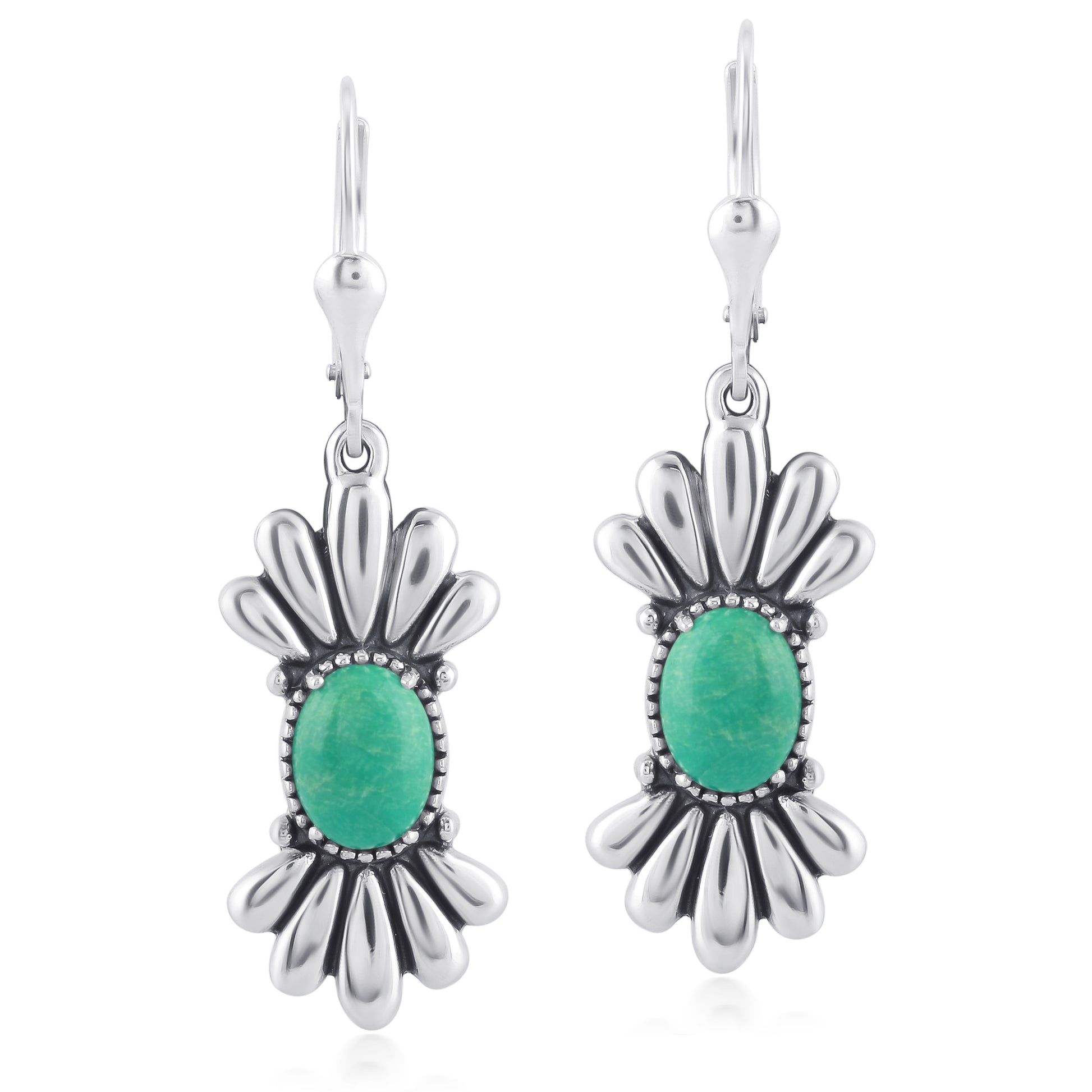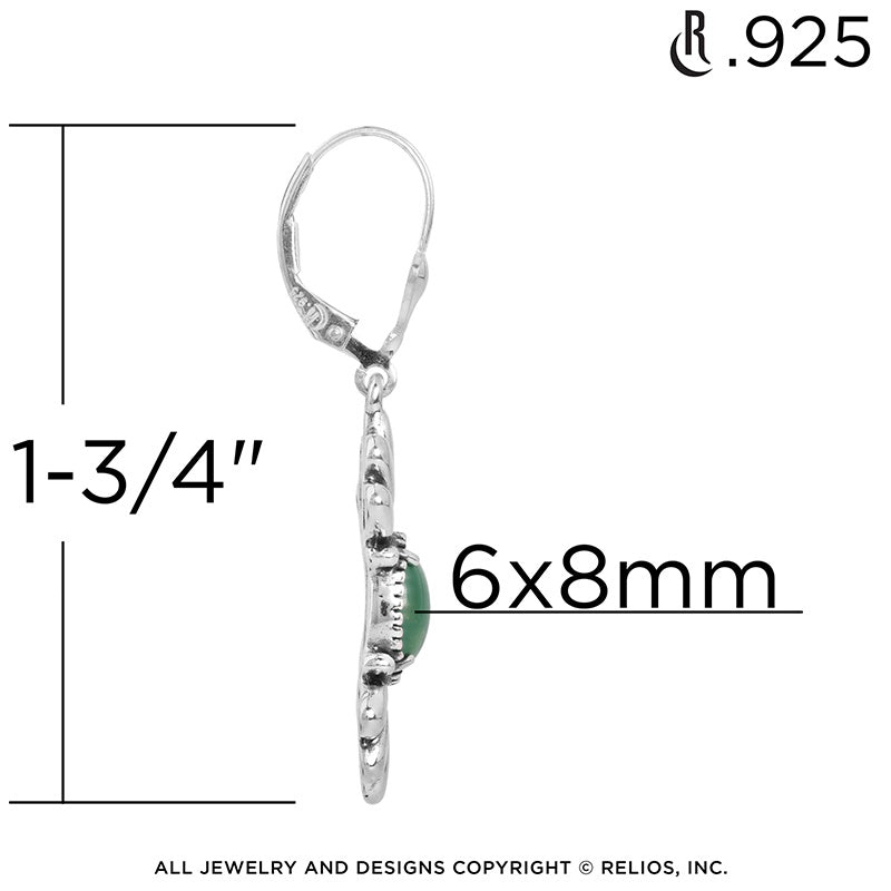Beautiful Western Jewelry- Add a pop of color wearing these beautiful 925 Sterling Silver earrings that feature a teadrop design with oval-shaped green Turquoise prong-set gemstone in the center. Green turquoise is referred to as the Earth Stone. According to Navajo legend, the sun was created from a piece of turquoise, the moon from a piece of shell.