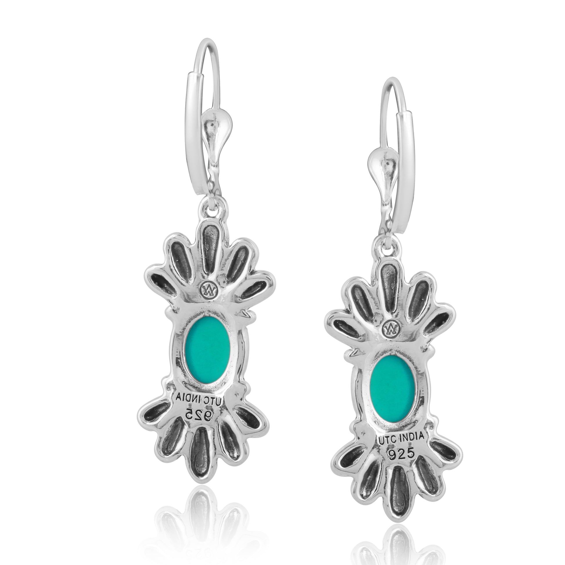 • Add a pop of color wearing these beautiful 925 Sterling Silver earrings that feature a teadrop design with oval-shaped green Turquoise prong-set gemstone in the center.
