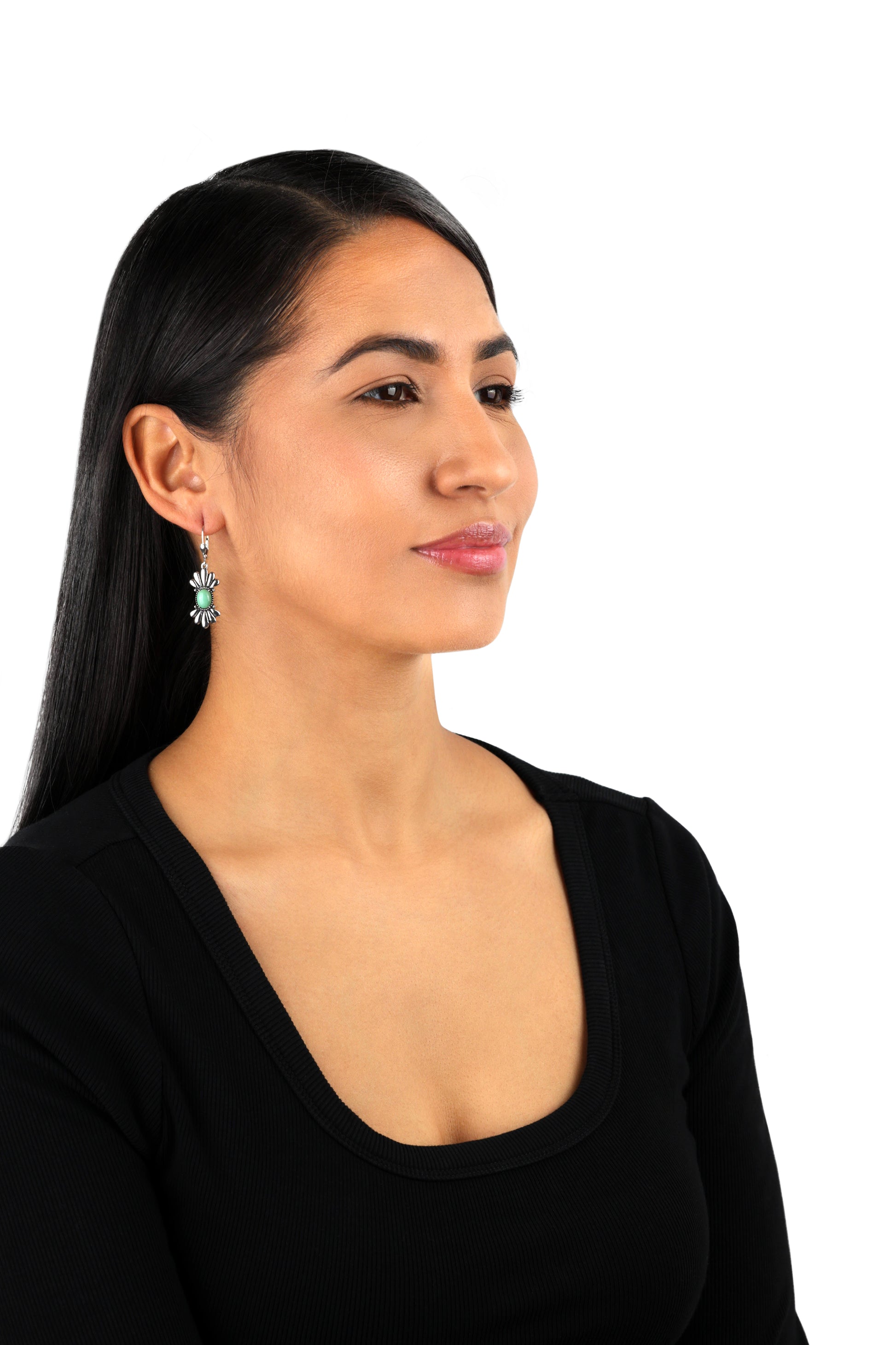 Sterling Silver Green Turquoise Gemstone Dangle Earrings