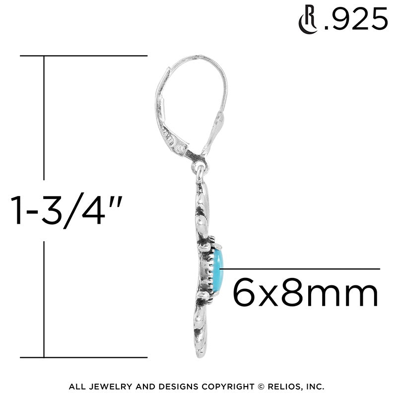 Add a touch of sophistication to your look with the Sterling Silver Kingman Turquoise earrings. These beautiful Sterling Silver earrings feature a fan design at the top and bottom with oval-shaped Kingman Turquoise prong-set gemstone in the center. Kingman Turquoise is prized for its rich blue hues and distinctive black or brown matrix, sourced from the Kingman Mine in Arizona, one of the oldest and most productive Turquoise mines in the United States.