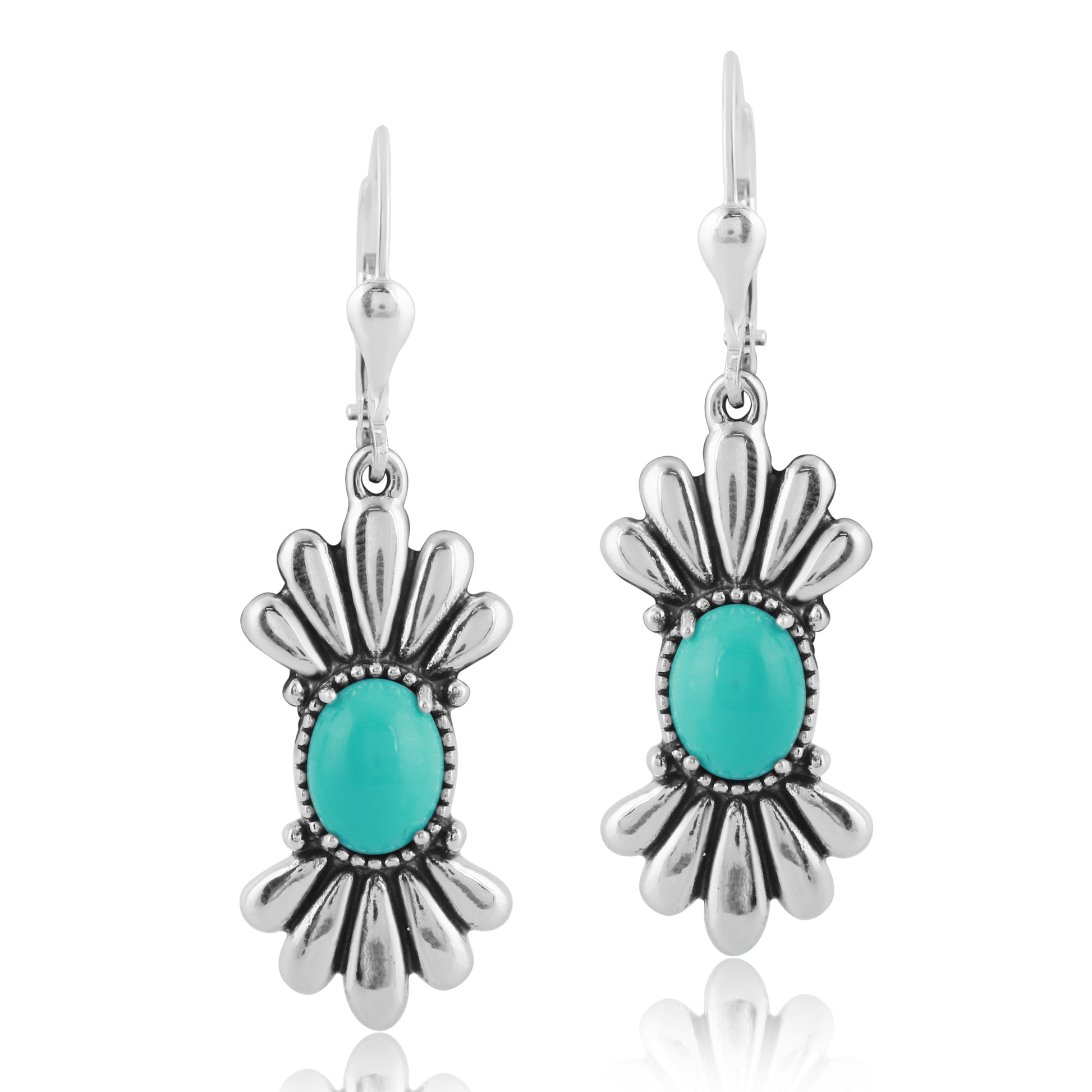 Sterling Silver Kingman Turquoise Fan Design Dangle Earrings