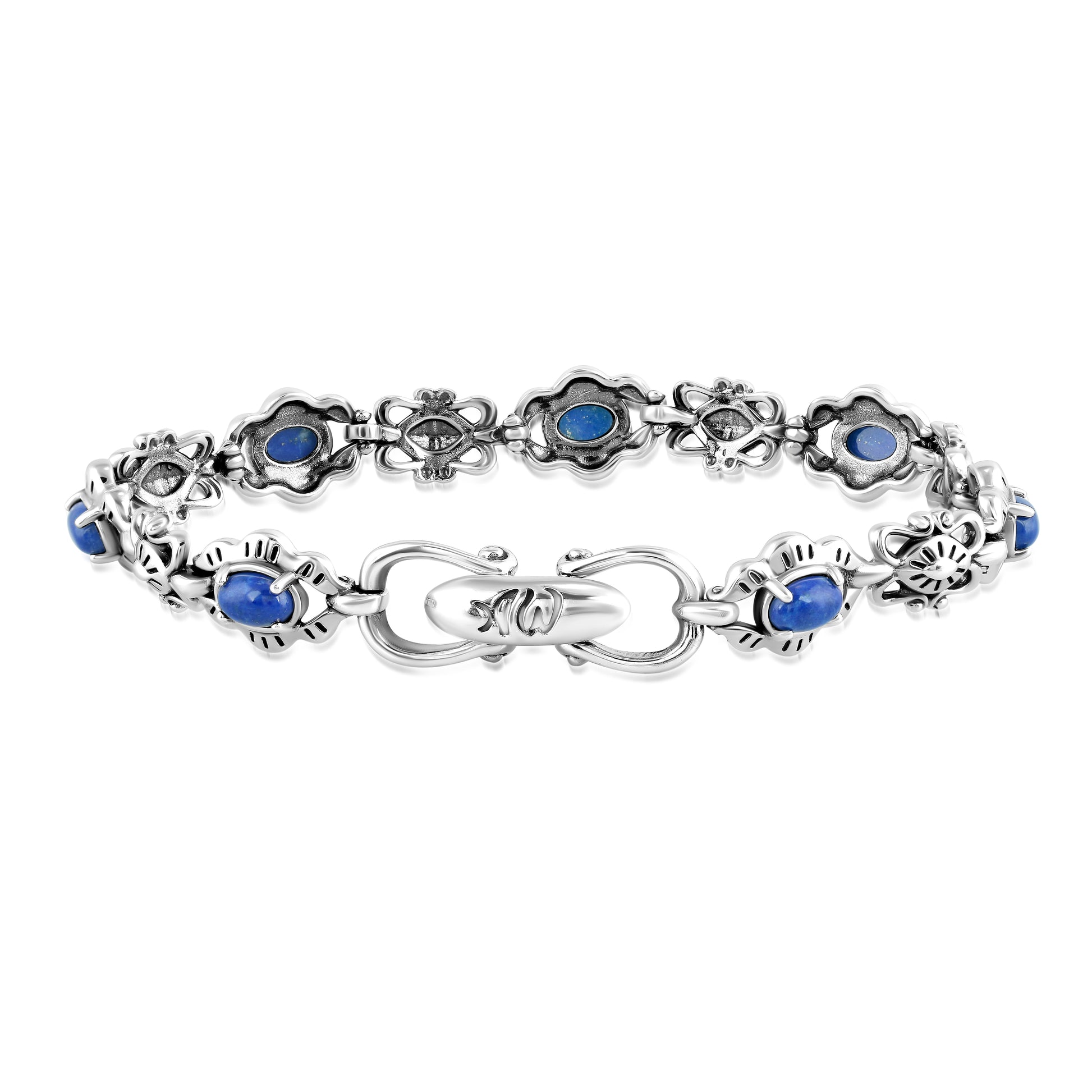 Sterling Silver Lapis Gemstone Concha Link Bracelet, Sizes Small to Large