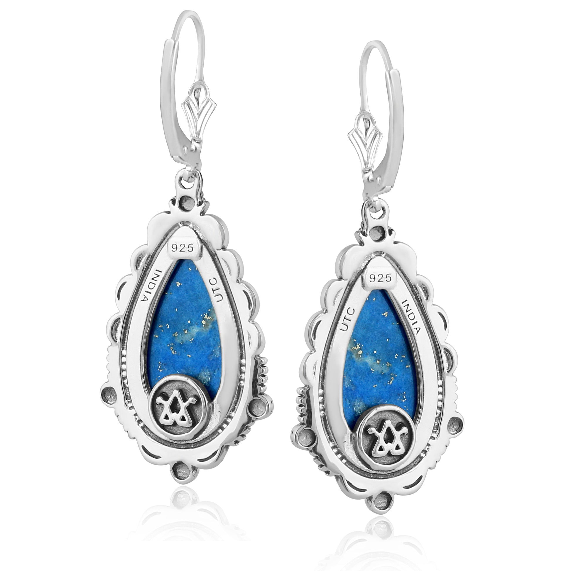 Sterling Silver Lapis Pear Shaped Gemstone Dangle Earrings