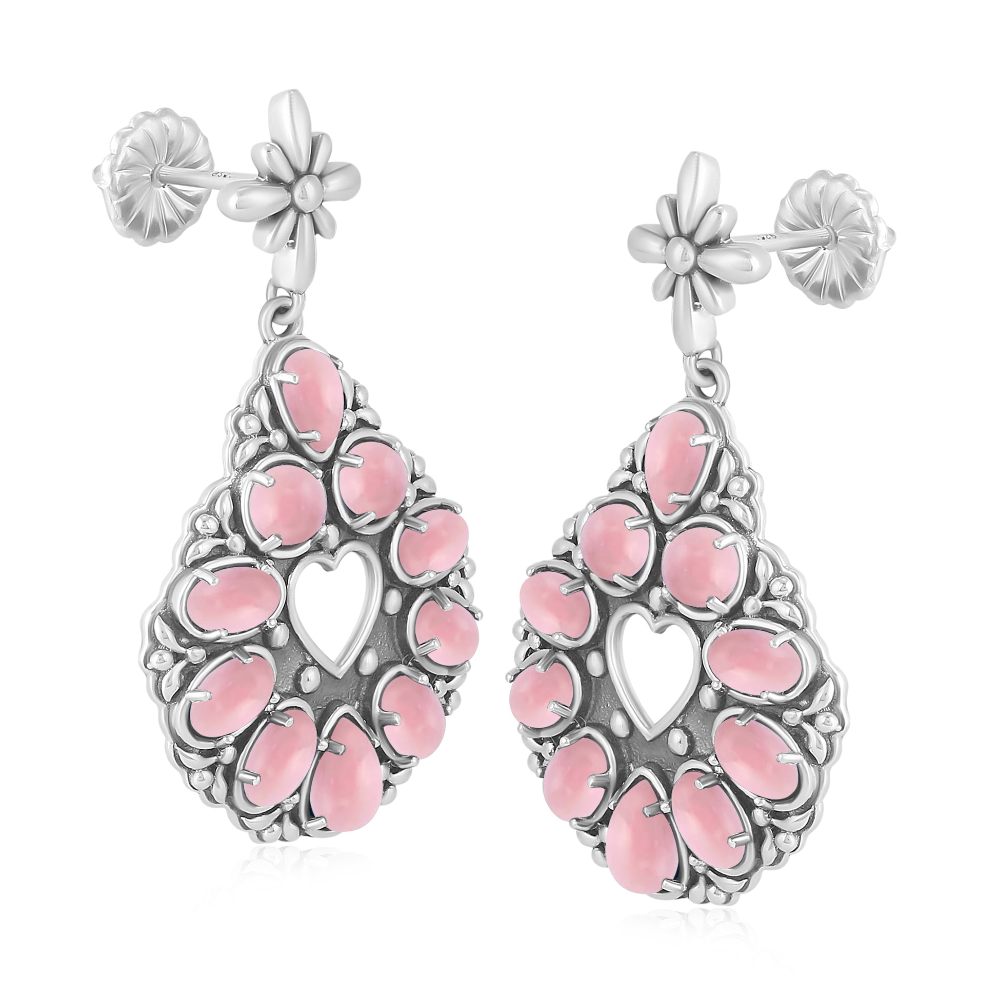 Sterling Silver Pink Opal Heart Center Teardrop Dangle Earrings