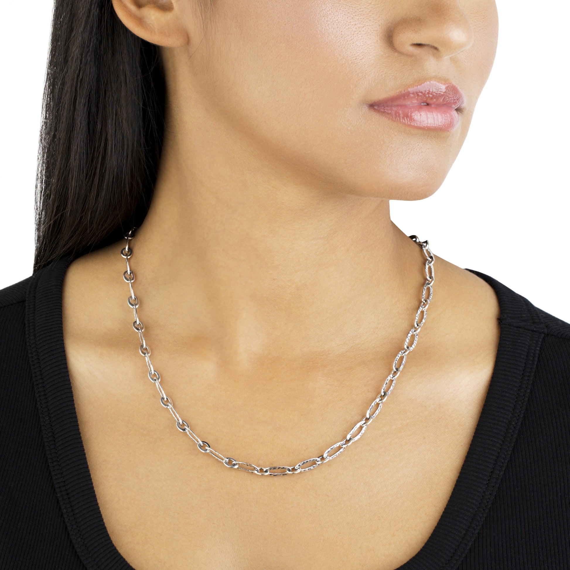 • Oval link chain; oval textured links alternating with polished links; oxidized finish; links are approx. 6.35mm wide